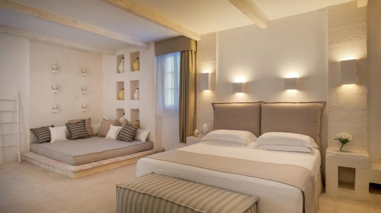 Set in the beautiful Salento countryside, Baglioni Masseria Muzza is a 5-star resort with a dedicated spa and wellness centre, 40 rooms and suites, and 2 restaurants. There are 11 room and suite categories, and each one has a private patio and free shuttle to nearby beaches. The 2 restaurants, Mirto Restaurant and La Limonaia Restaurant, offer traditional regional cuisine with exclusive wines and refreshing cocktails. Plus, the spa and wellness centre has a steam bath, a pool, a Finnish sauna, an ice fountain, and a relaxation zone.