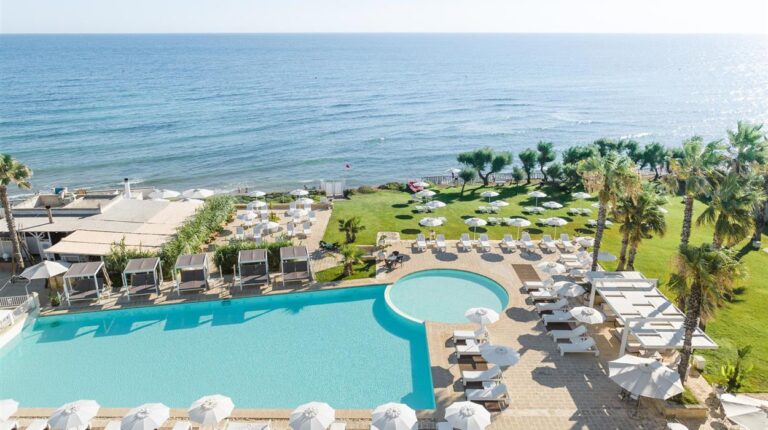 Situated on the golden sandy coast of Torre Canne di Fasano, the Canne Bianche Lifestyle Hotel is a 5-star resort in the heart of Puglia. Featuring 50 spacious and brightly decorated rooms, all accommodation types have plenty of natural lighting, partial or full sea views, and fine Italian marble bathrooms. There are 5 onsite dining venues, which includes fine wine surrounded by lush gardens and atmospheric, open-air dining in the veranda. Plus, the pool and sea facilities offer spectacular views of the crystal-clear waters.