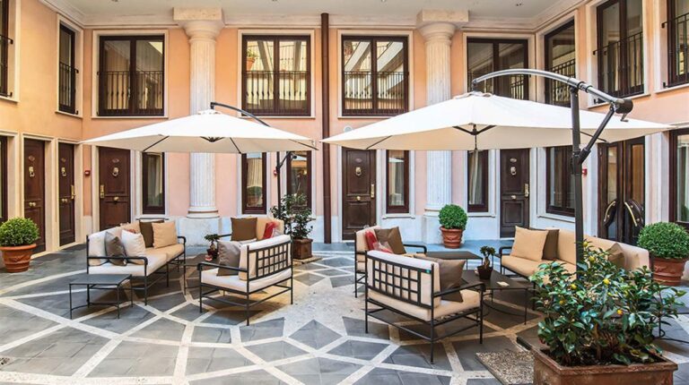 Hotel River Palace provides luxury accommodation in the heart of Rome. The 72 rooms are fully furnished with 330 thread count linen cotton satin sheets, marble and mosaic bathrooms, and window garden and city views. The friendly and hospitable staff will take care of everything you need, from laundry and babysitting and more. The daily breakfast and lounge bar offers fresh local and international cuisine with specially-made cocktails. Located in a quiet area away from traffic, Hotel River Palace is within walking distance of Piazza del Popolo and the long staircase of Trinita dei Monti.