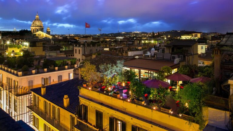 The Inn and View at the Spanish Steps is a 5-star hotel in Via Dei Condotti 85, a famous Roman shopping street. The hotel resides in a restored 18th century building, with newly renovated public spaces and private quarters. Each of the 13 room and suite categories are beautifully decorated with traditional accents and contemporary furnishing. They have Italian marble bathrooms and window courtyard views. The daily buffet breakfast offers various sweet and savoury selections. There is authentic Italian coffee, organic fruits, and dishes for special dietary requirements.