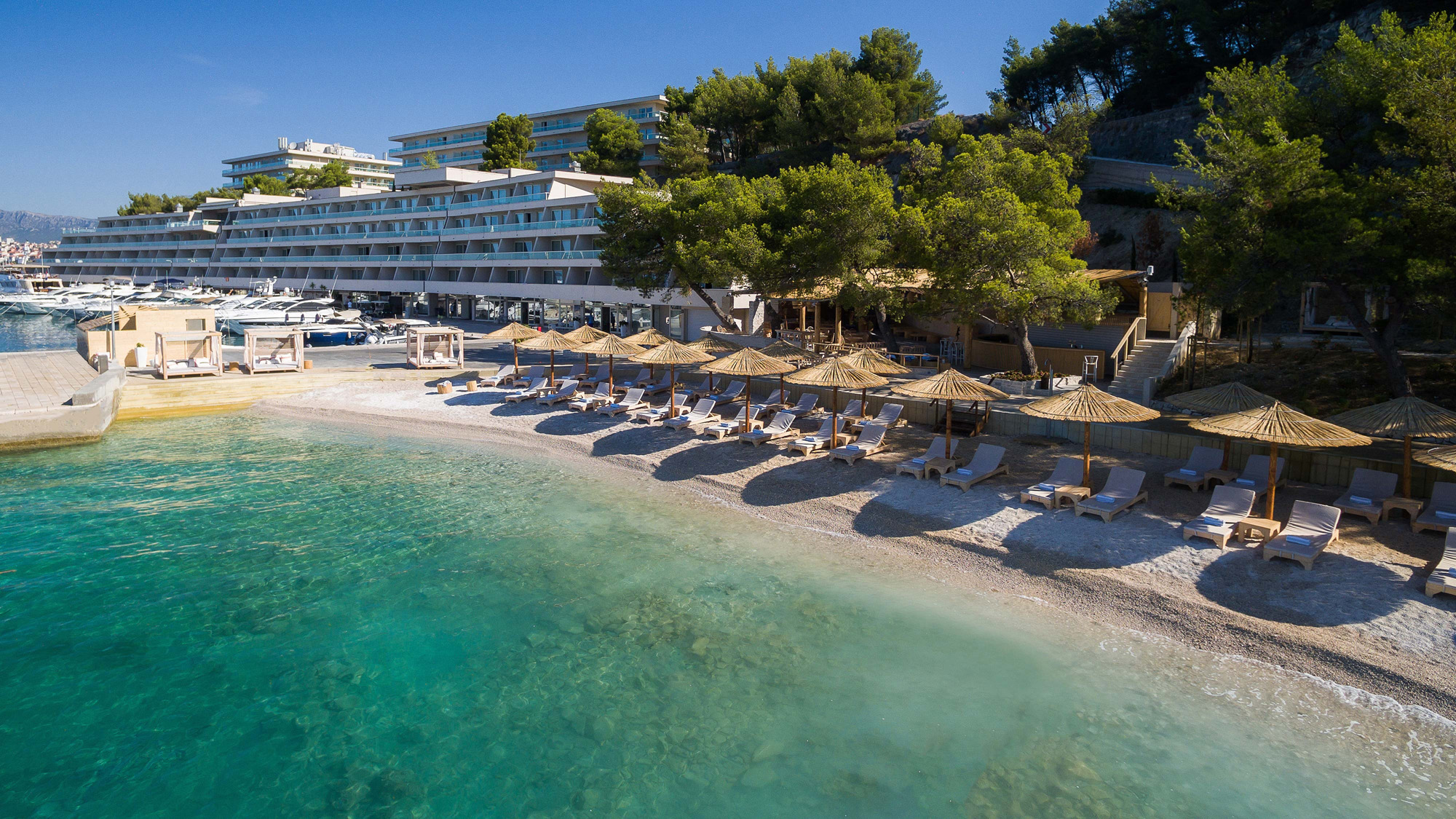 Le Meridien Lav Podstrana is a luxurious five-star hotel situated along Croatia’s stunning Dalmatian coastline just outside Split. Offering refined elegance and modern comfort, the hotel features beautifully appointed rooms and suites, many with panoramic views of the Adriatic Sea. Guests can indulge in exceptional dining options, from Mediterranean cuisine to international delicacies, in exquisite settings. Leisure and wellness amenities include a private beach, outdoor pool, indulgent spa, and a range of activities such as water sports and tennis. Located near Split, the hotel serves as an ideal base for exploring the region’s cultural and historical wonders, while providing a serene retreat for those seeking relaxation. With its blend of sophistication and natural beauty, Le Meridien Lav Podstrana offers an unforgettable Croatian experience.