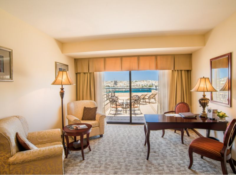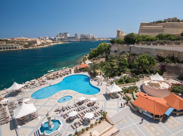 The Grand Hotel Excelsior prides itself as being one of the premier luxury 5* star hotels in Valletta. The hotel can be described as grand, opulent and steeped in history as the property and its olive gardens emerge from Vallettas 16th century fortifications, offering magnificent views of Fort Manoel, as well as Marsamxett harbour. The hotel is a few hundred metres away from Vallettas main entrance, a UNESCO World Heritage city and Maltas capital, allowing guests to explore its rich history and culture and its beautiful Baroque architecture. The hotel is a short 20 minute drive from Malta International airport, and is also in close proximity to most of the islands treasures.