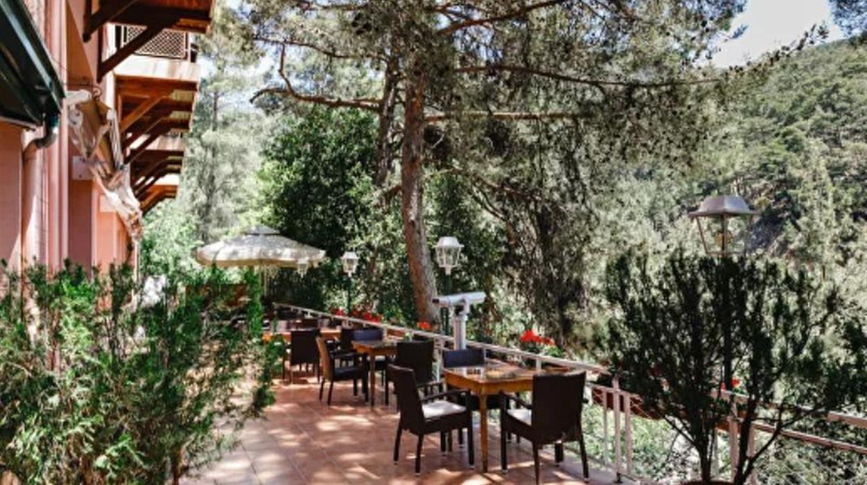 Nestled into the lush pine-forested slopes above the Kaledonia Waterfalls, New Helvetia Hotel offers a tranquil retreat blending vintage charm with modern comforts. Its century-old architecture and renovated rooms still echo history, complemented by warm family management and views that extend over woodland and mountain air. It is perfect for travellers seeking peace, culture, and natural beauty. Whether enjoying wine by an antique fireplace, exploring hiking trails, tasting local Cypriot cuisine under the pines, or simply relaxing in serenity, New Helvetia provides a restorative mountain stay that feels like coming home.