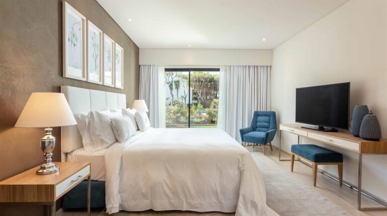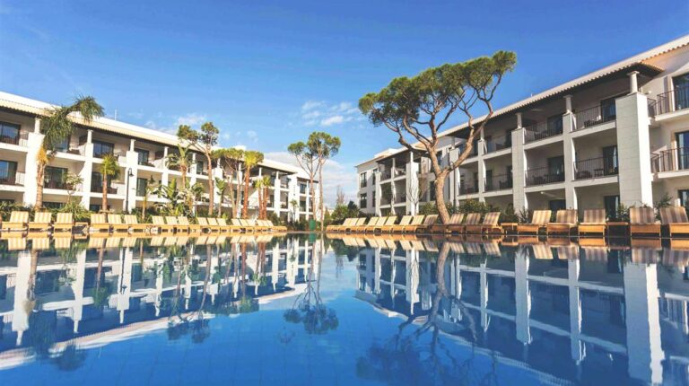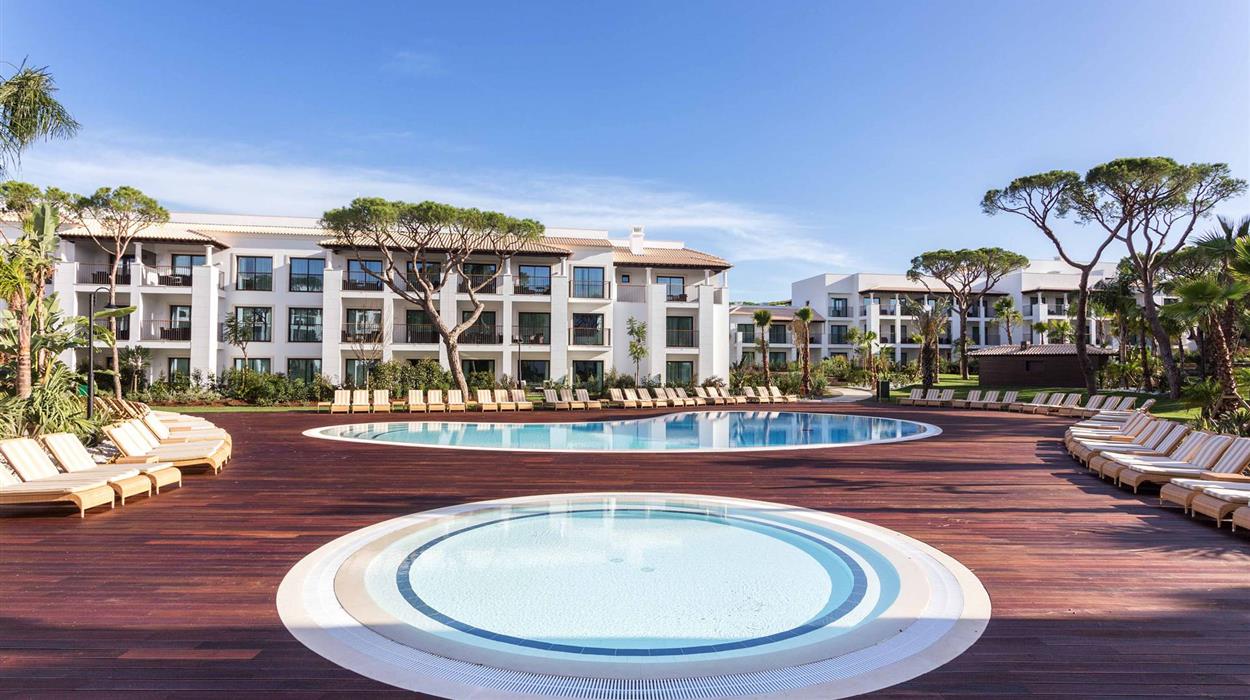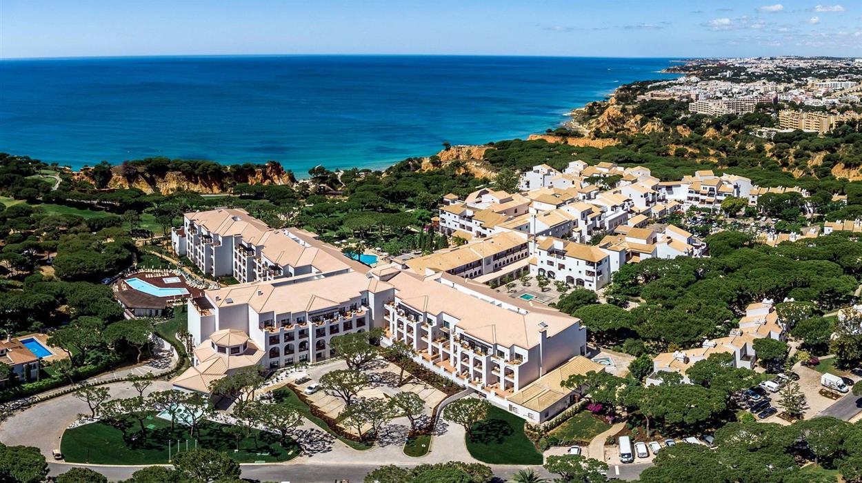 Pine Cliffs Hotel is a luxurious, award-winning family hotel in Albufeira. Located on the seafront, it offers incredible views of the beach and Atlantic Ocean. There is also a scenic golf course that stretches along the coastline. There are 217 rooms available, a fitness centre, a spa and wellness centre, 13 onsite dining options and various sporting facilities including tennis courts, professional football centre and watersports. It also has designated facilities for hosting large-scale private and corporate events, including weddings and concerts.