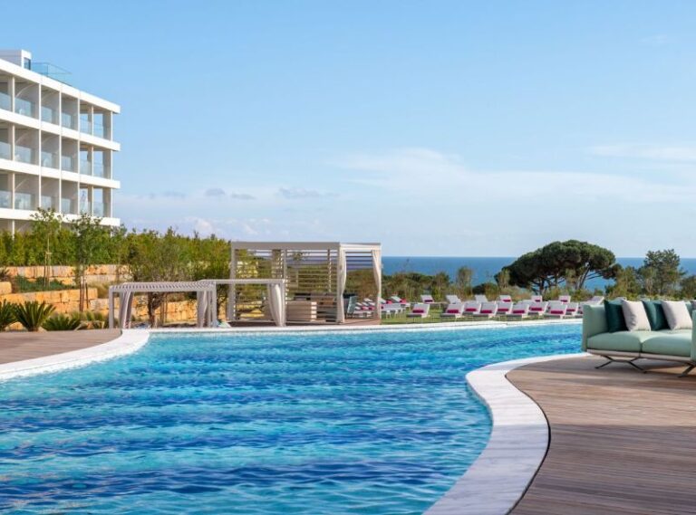W Algarve is a five-star hotel in Albufeira which features 134 guest rooms and suites as well as 83 residences. Each room provides spacious accommodation and modern amenities, along with custom-made furnishings and private balconies overlooking the pool. W Algarve has onsite dining facilities, a state-of-the-art spa & fitness room and meeting spaces for private and corporate functions. For golfers, Albufeira’s excellent 18-hole courses and facilities are within easy reach. For swimming and poolside relaxation, visit the SIP @ WET pool where you can unwind and treat yourself to food and beverage service.