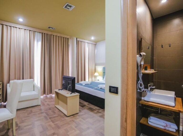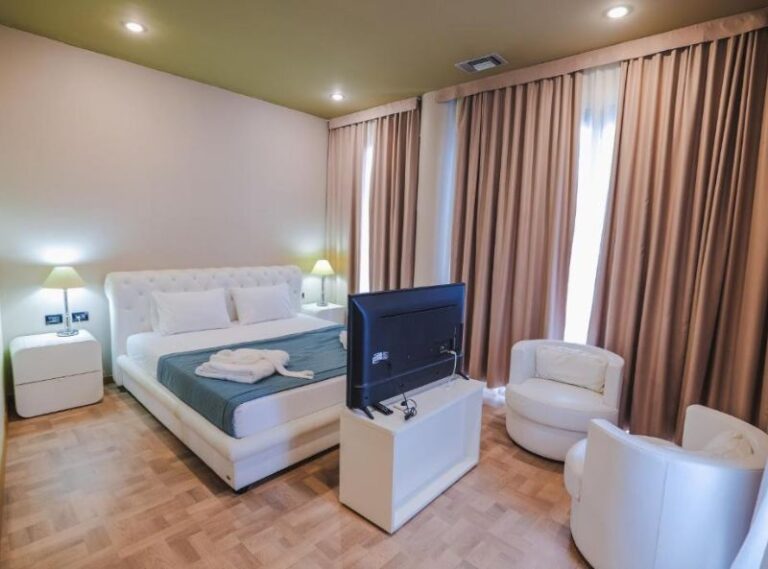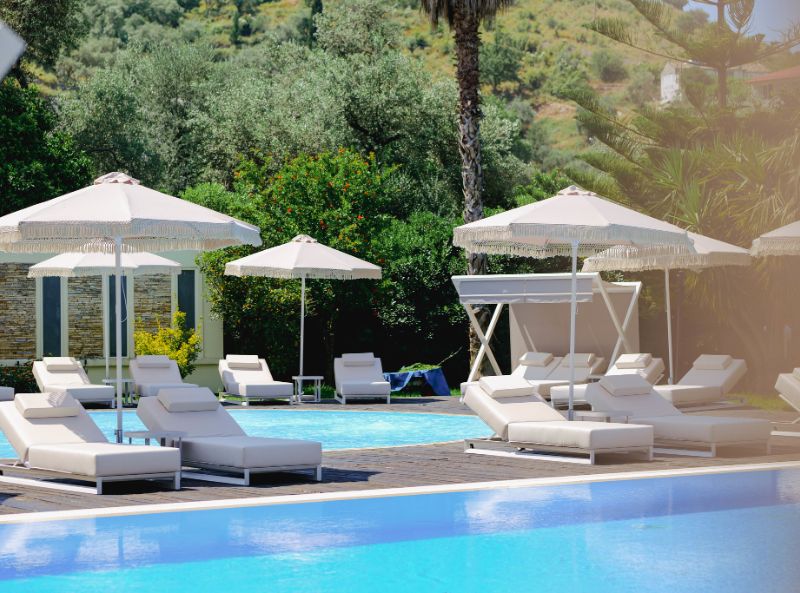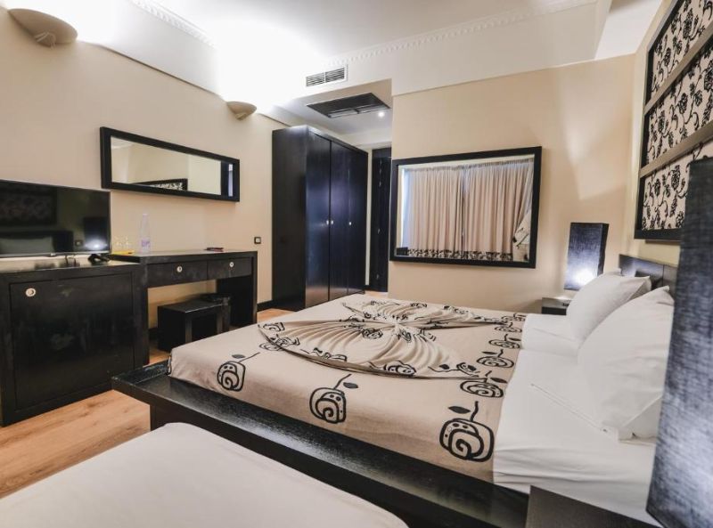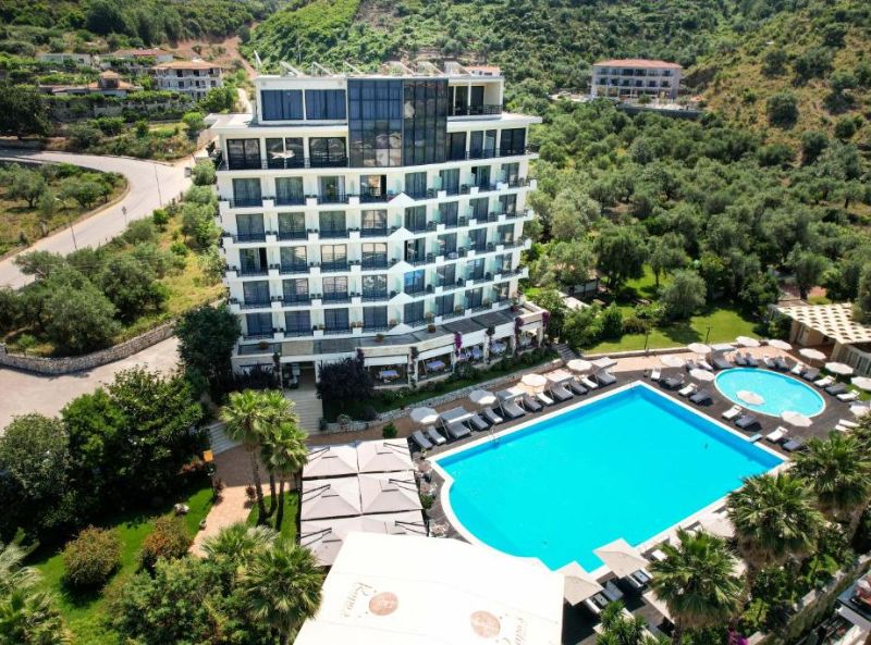 Rapos Resort Hotel is a 5-star resort in Himare, Albania and is just 50m walking distance from a private beach. Set in a beautiful tropical region, the hotel has an outdoor swimming pool, bar and restaurant (with terrace), and a stylish interior design that uses warm colour tones to enhance the vibrant atmosphere. Each room is fully air conditioned, with all the amenities you need to enjoy your stay: tea and coffee facilities, quality bed linen, and a window view of the beachfront.