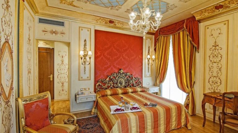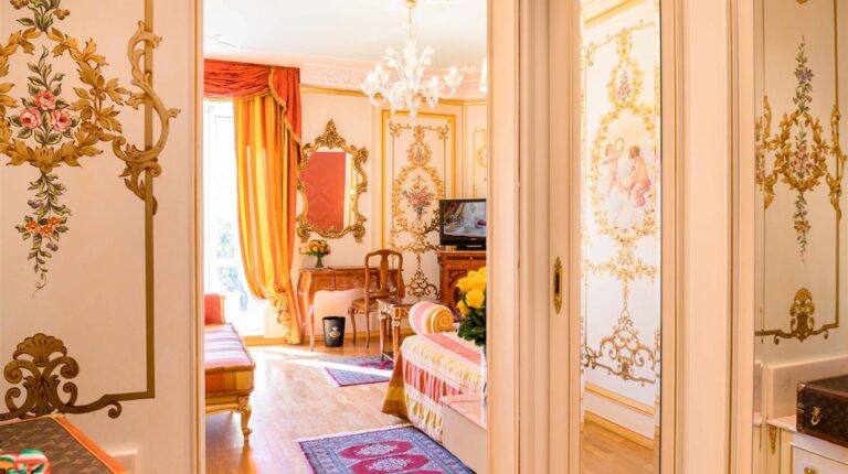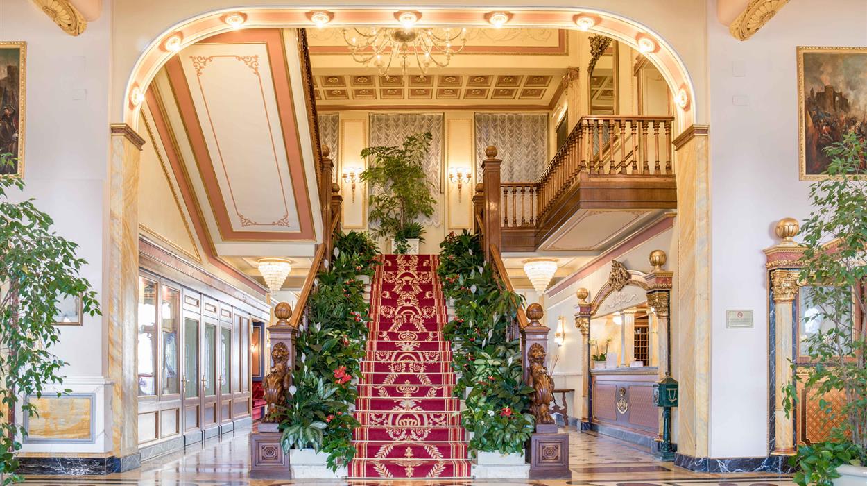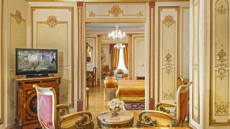 Overlooking Lake Maggiore and facing the Borromeo Islands, Regina Palace Hotel is a 4-star resort with 214 rooms, 2 restaurants, a park and swimming pool, and the Regina Sporting Club. Each room is elegantly decorated with gold leaf by using an ancient restoration technique and precious fabrics. Modern amenities like air conditioning, a safe, a minibar, and free Wi-Fi come standard. The 2 restaurants, Library and Charleston, both offer kosher, gluten-free, vegetarian, and vegan dishes. And Bar 1900, located on the ground floor, is the perfect rendezvous point after a busy day.