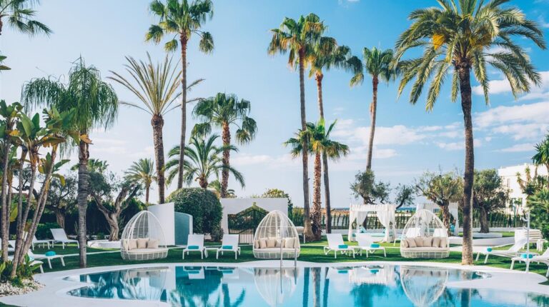 Iberostar Selection Marbella Coral Beach is a lush 4-star hotel directly on the seaside promenade. Situated 1km from Puerto Banus and 5km from the centre of Marbella, the hotel is in close proximity to various golf courses and local attractions. There are 13 room and suite categories. Each room operates on 100% renewable electricity and is free of single-use plastic, making your stay more sustainable and eco-friendly. Youll also enjoy convenient beachfront access, 3 pools, a luxurious beach club, and exceptional dining areas serving national and international cuisine.