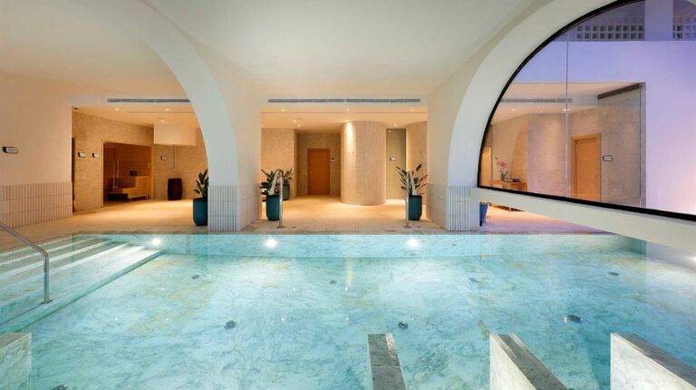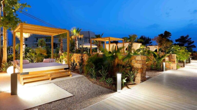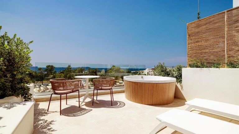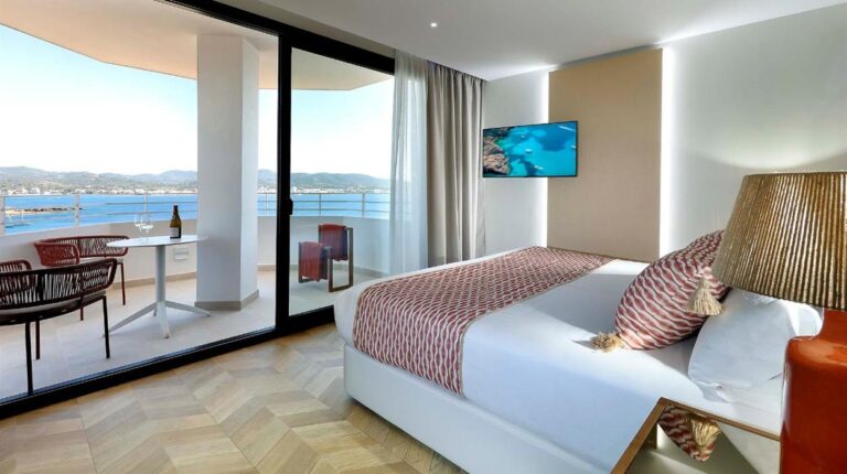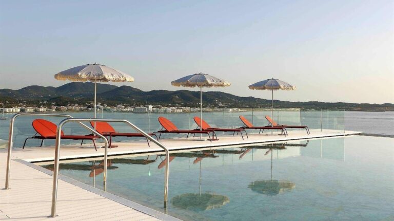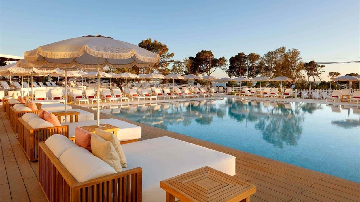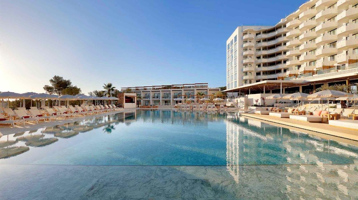 TRS Ibiza Hotel is a 5-star resort in San Antonio, Ibiza. Overlooking the Mediterranean Sea, the hotel offers panoramic sea views, open-air dining experiences, and direct access to Cala Gracio beach. There are 3 spacious pools and a rooftop infinity pool, gourmet restaurants and bars, and even a personalised butler service to make your stay more convenient.