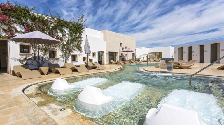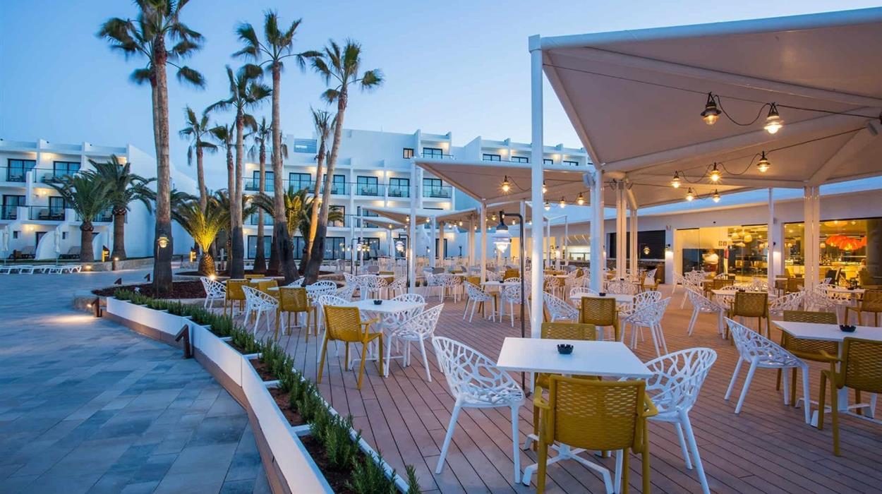 The Grand Palladium White Island Resort & Spa is a 5-star hotel in Playa DEn Bossa, Ibiza. Set on a gorgeous beachfront setting, the hotel offers panoramic sea views and beach proximity. There are 12 room and suite categories. Each room has an electronic safe, 42 flat-screen TV, and black out curtains for privacy and insulation. With 13 restaurants, bars, and lounges to choose from, there are plenty of culinary experiences to enjoy. These include specialty cocktails at the Salinas Lobby Bar, self-service dining at Portofino, and more.