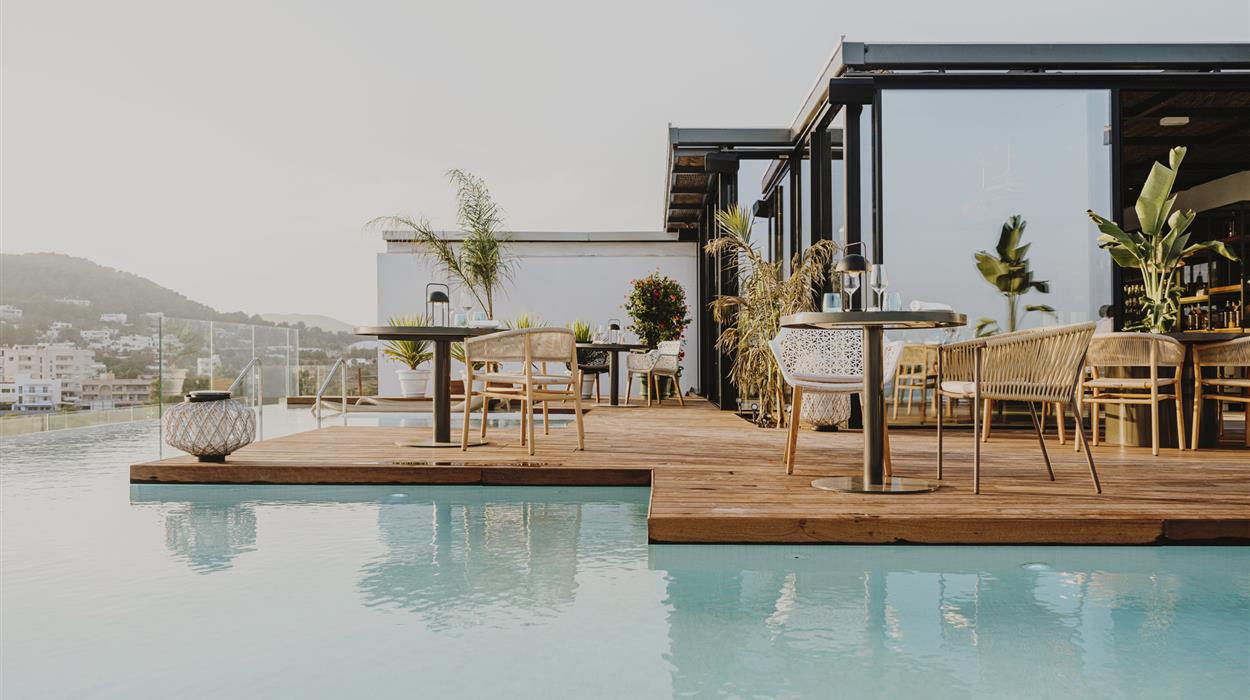 This 5-star hotel is located in Santa Eulalia, offering 12 room and suite categories, each featuring a terrace with panoramic views and complimentary access to the hotel’s expansive spa facilities. Four onsite dining venues blend island-inspired gastronomy with innovative cocktails and Mediterranean-style indoor and outdoor dining experiences. The spa and wellness centre, curated by Revival Spa and Clarins, is dedicated to promoting physical and spiritual harmony.