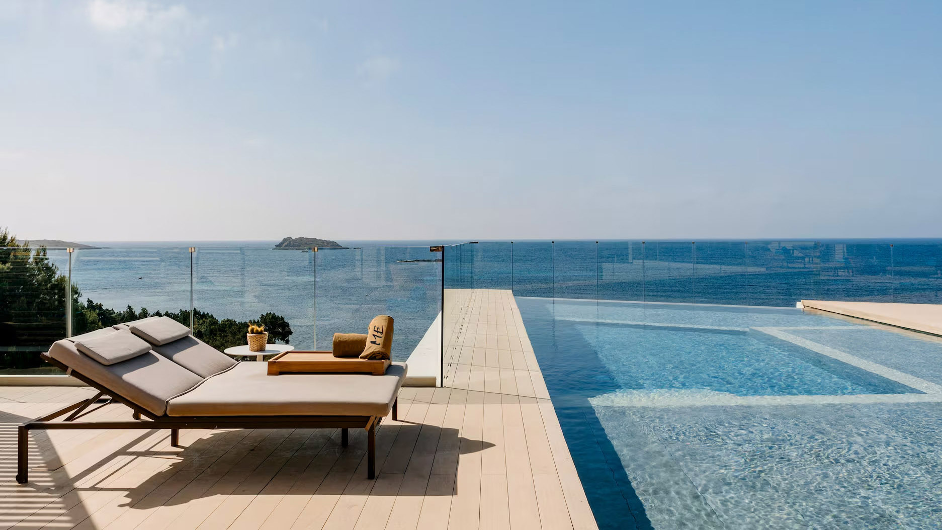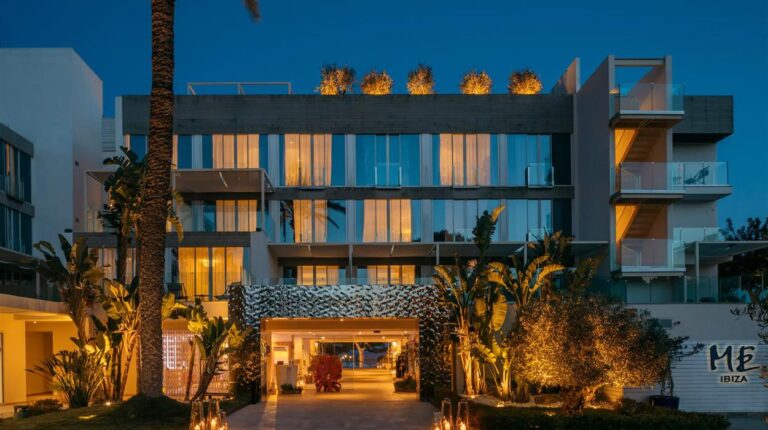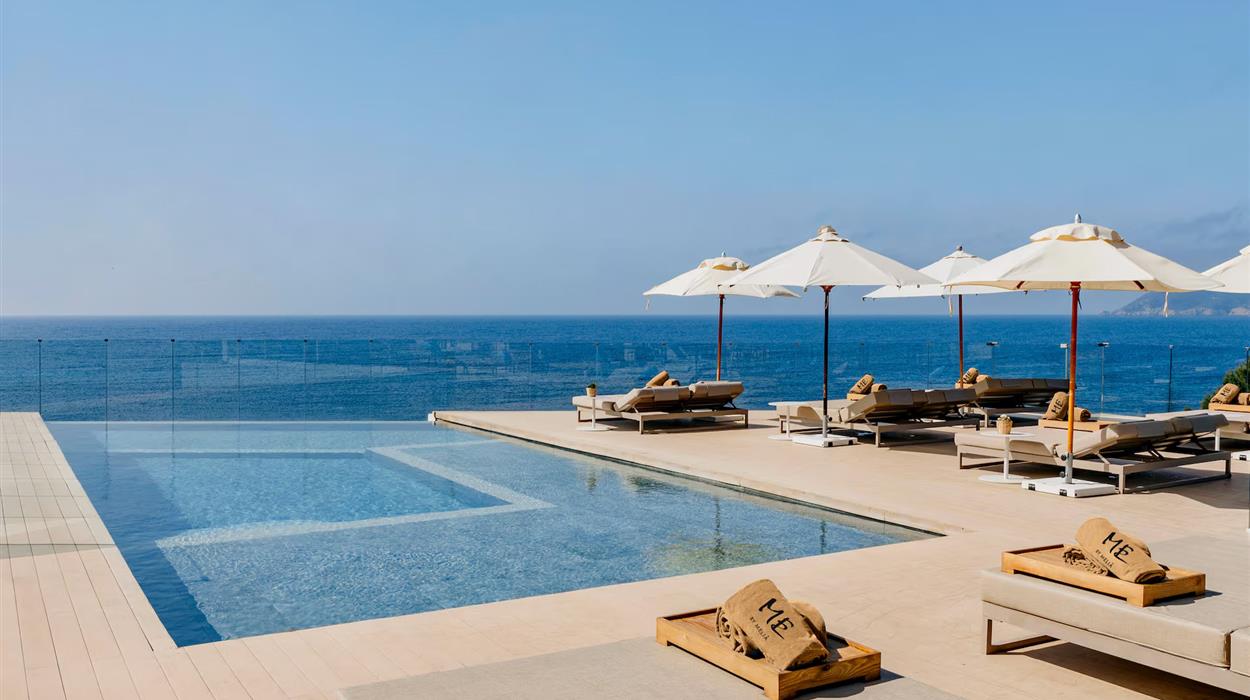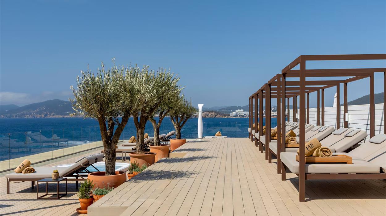 ME Ibiza is a 5-star beachside retreat located in a secluded bay, with magnificent panoramic sea views, relaxing outdoor lounge areas, and an enviable Mediterranean atmosphere. There are 15 room categories, and each one has Ibiza-style decor with hardwood flooring and an extensive minibar. The onsite dining venues offer a mix of Mediterranean and Italian cuisine, as well as comfortable indoor and outdoor dining settings. The RADIO Rooftop is the perfect way to enjoy 360° views of the beaches and sea.