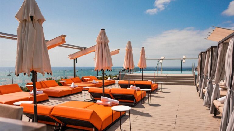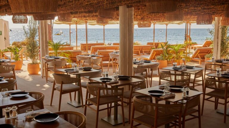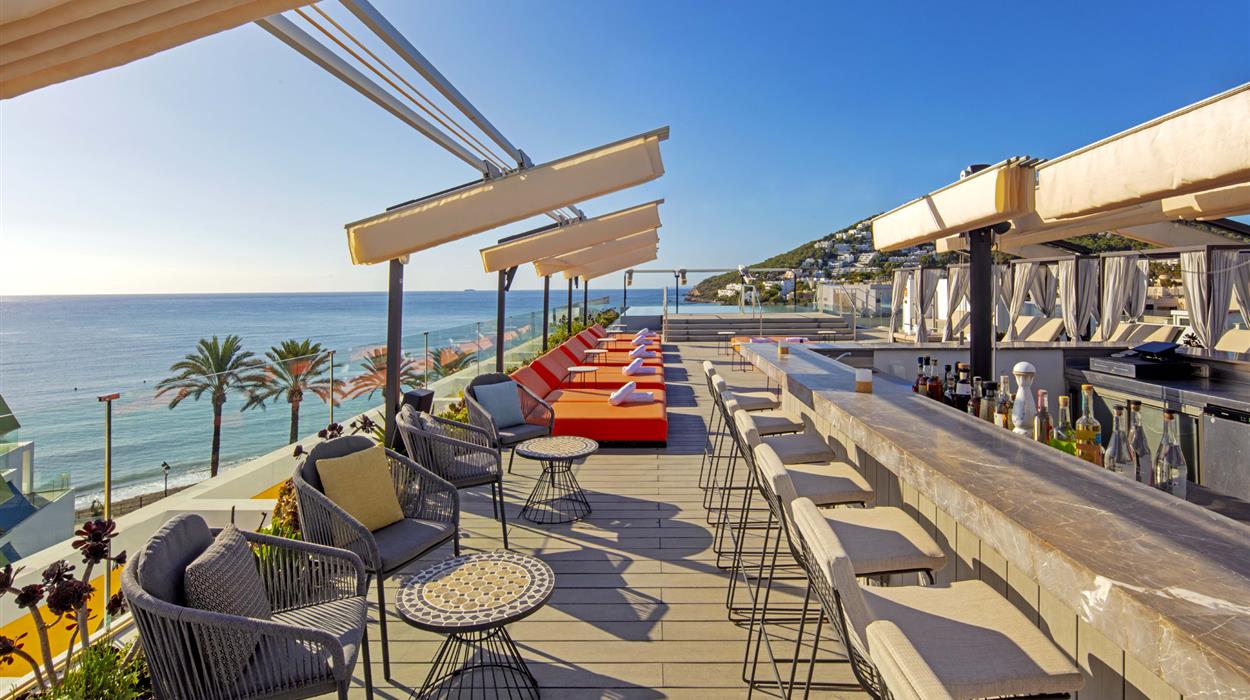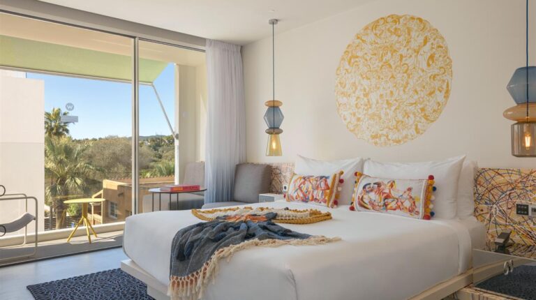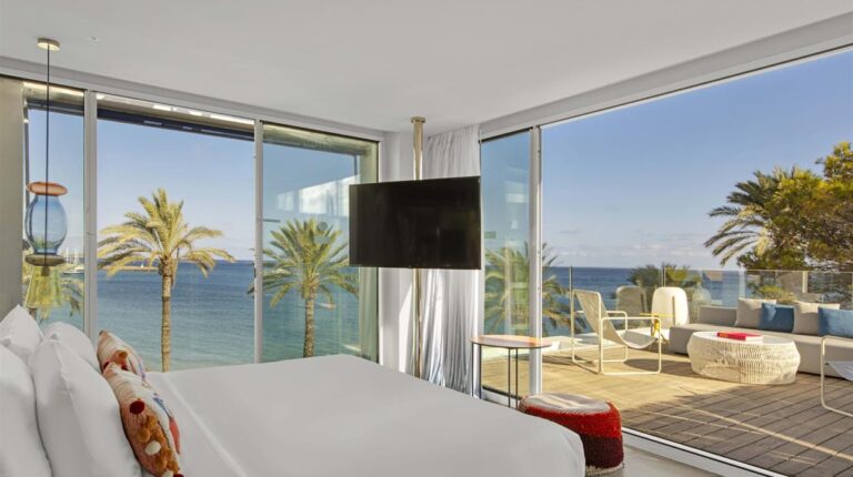 W Ibiza is a 5-star hotel on the beachfront of Santa Eulalia. It is a 20-minute drive from Ibiza city and a short trip from Ibiza Airport. There are 124 guest rooms and 38 luxury suites. Each one has an inventive colour scheme with kaleidoscopic paints that evoke summer vibes. During your stay, enjoy any of the 6 restaurants or bars. These include the breakfast buffet at FIRE, specialty cocktails and live DJs at the WET Deck, and open-air dining at the Yellow Fish Beach Club.