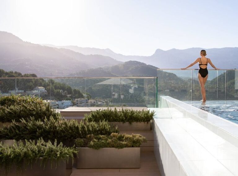 This serene, clifftop hotel overlooks Port de Soller Bay and the Tramuntana Mountains, part of a UNESCO World Heritage site. The hotel offers a glass-roofed foyer, welcome beverages, and a unique aroma influenced by the area’s famed orange trees. Guests can visit Port Soller or enjoy sea views from the adult-only infinity pool. The Sunset Lounge serves sunset cocktails. The hotel offers a spa, gym, and pool bar, while the scenic views and culinary delights of the restaurants and bars make your holiday unforgettable.
