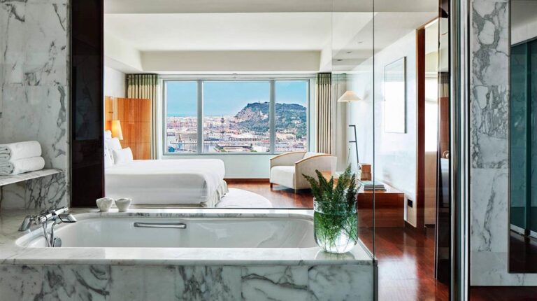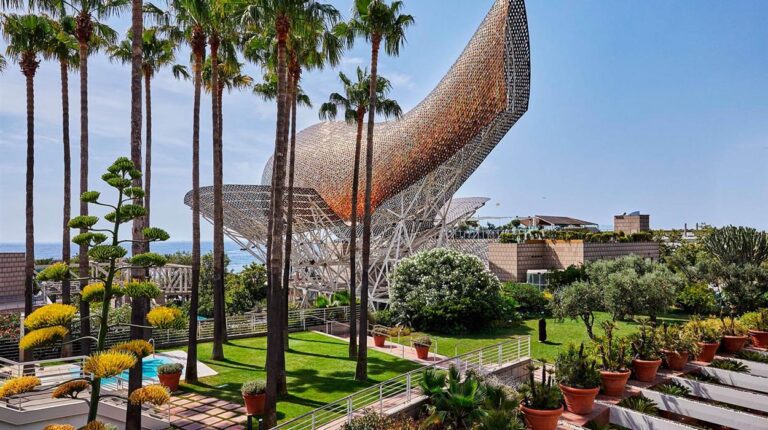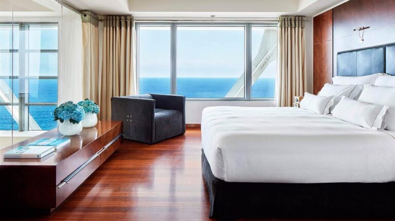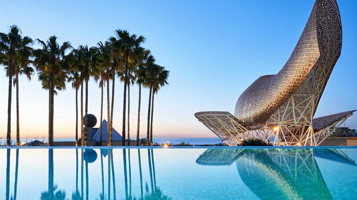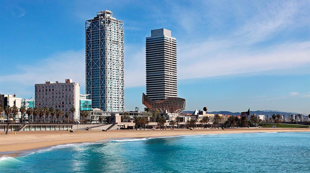 Towering 44 floors above the sea, the 5-star Hotel Arts Barcelona boasts an impressive array of amenities. Guests can enjoy a rooftop bar, a 2-Michelin star restaurant, 2 outdoor pools and breathtaking views of the sea and gardens. 8 room and suite categories all feature modern amenities and spacious furnishings; Penthouses stand out with their luxurious living rooms and fully-equipped kitchens. Floating high above the city, the Barcelona luxury spa bathes in natural light and offers sweeping sea and city views.