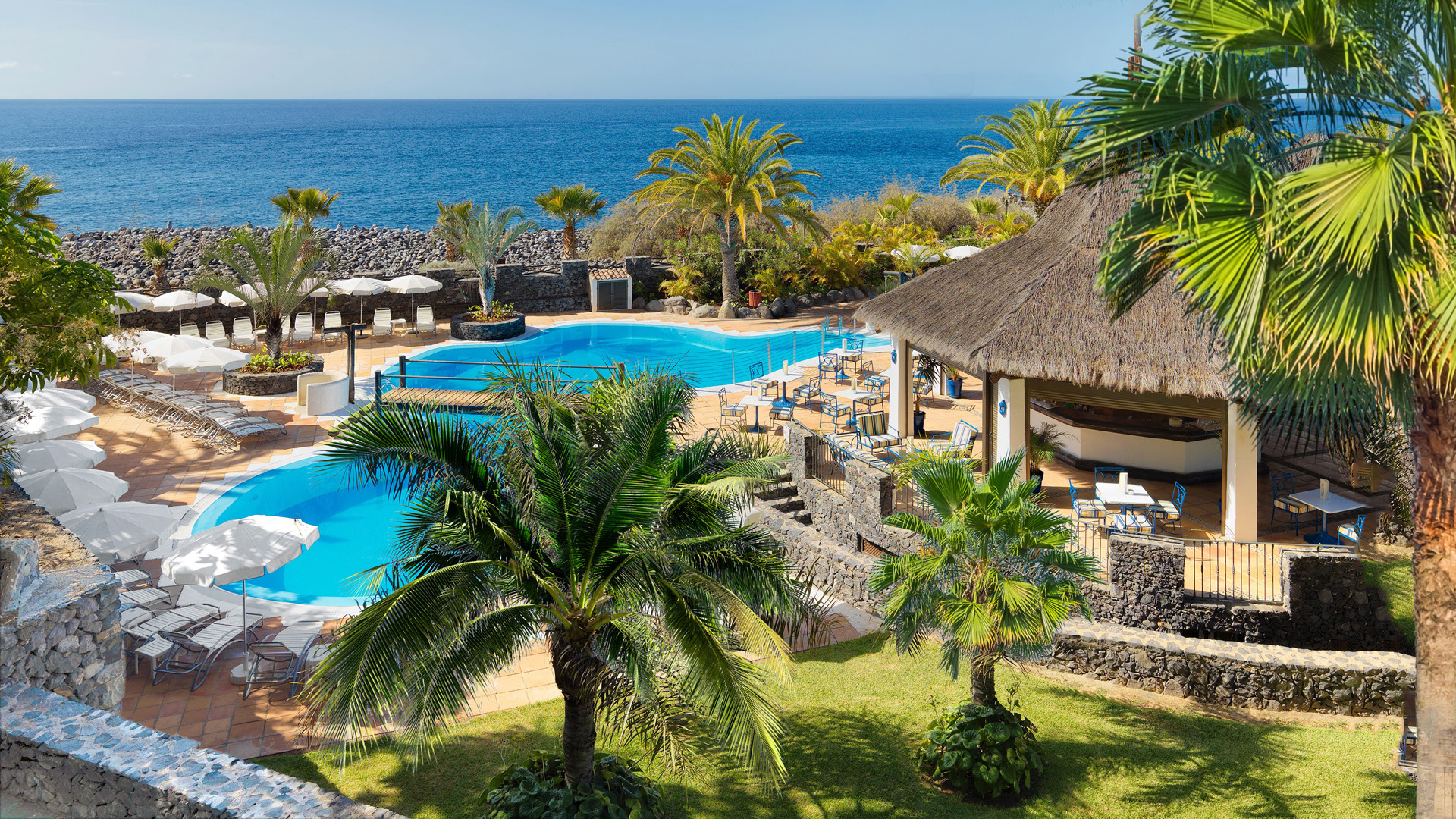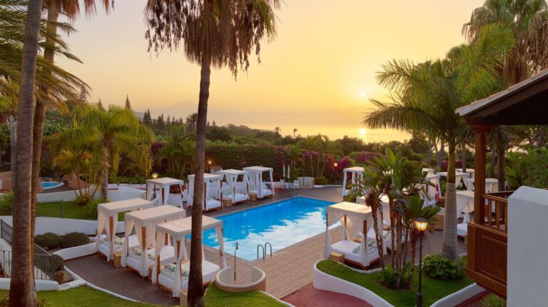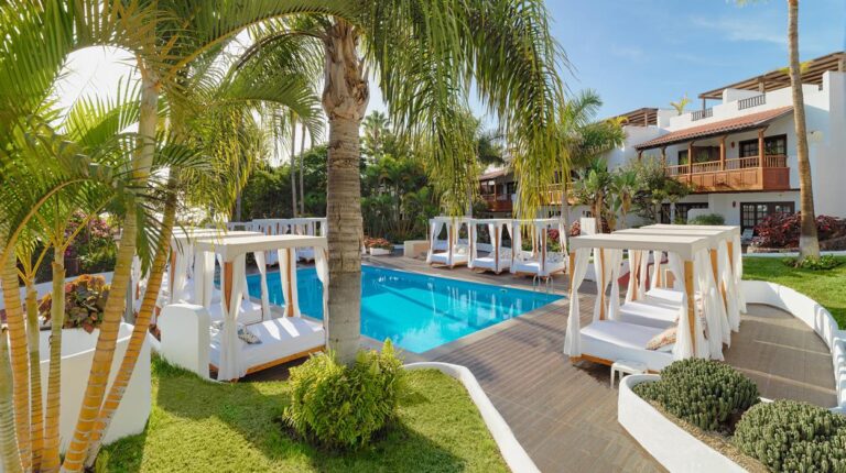 This chic 4-star beach retreat offers a unique coastal break on the small, bohemian island of La Gomera. Less than a minute’s walk from the coastline, the property is surrounded by over 70,000sqm. of landscaped gardens. Guests can enjoy the outdoor pool, hot tub, fitness centre, squash courts, mini golf course and tennis courts. Tecina Golf Club is nearby for golfing. Rooms are spacious and have private terraces for relaxation