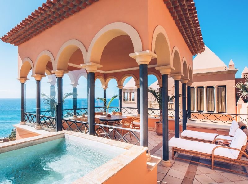 The Iberostar Grand El Mirador boasts direct access to the beach and is renowned as the best adults-only boutique resort in Costa Adeje. Overlooking the beautiful azure waters of the North Atlantic and situated across from the fabulous El Duque beach, this 5-star hotel is the perfect holiday retreat for sun, sea and sand, complemented by unadulterated luxury during your stay. The hotel itself features an impressive façade of majestic arches, beautiful balconies and stylish cabanas, promising to impress as soon as you arrive; and reserved for over-16s only, Iberostar Grand El Mirador guarantees a relaxing, peaceful and memorable break in Tenerife, with great food and a great atmosphere to appeal to the most discerning travellers. Within the elegant resort, guests will have full access to an array of amenities, including a luxury spa and wellness centre complete with hydro-dynamic pool, whirlpool bath, Turkish bath, sensation showers, massage therapy and more. In addition to the on-site facilities, guests are also conveniently located to the best shopping areas in Costa Adeje, and there are also a number of renowned golf courses nearby too. Each of the 120 rooms are designed to reflect quality and elegance, and include all the 5-star charm you would expect from a high end boutique hotel.
