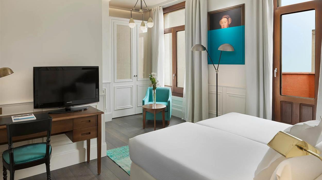 H10 Villa De La Reine is a 4-star hotel in Central Madrid, Spain. The hotel has a classy and elegant design, with contemporary decor and touches of 20th-century architecture. There are 9 room and suite categories and each one has free Wi-Fi, individual air conditioning, and a smart TV with international channels. The two dining venues include a restaurant and a bar, which includes a full range of breakfast options and specialty cocktails in an elegant setting.