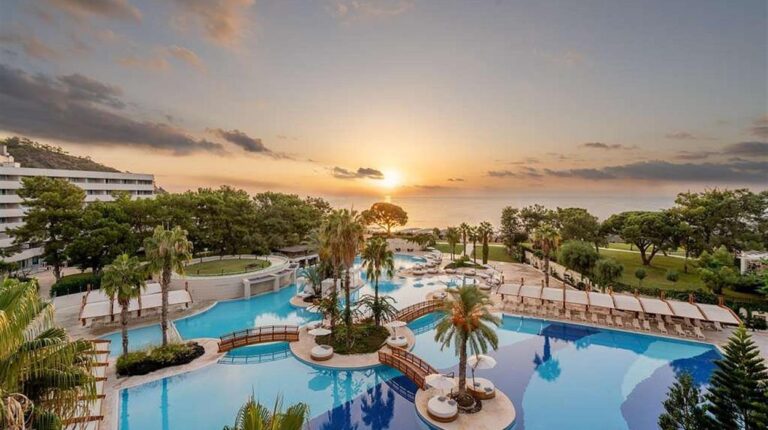 Rixos Premium Tekirova is a 5-star beachfront resort in Antalya, Turkey. Surrounded by the red pine trees of the Bey Mountains Coastal National Park, the hotel offers panoramic views of the Mediterranean Sea and a relaxed, tranquil atmosphere among nature. There are 2 room categories and 8 suite categories. Each one comes with a work table, daily breakfast, air conditioning, and wheelchair accessibility. There are 11 onsite restaurants and 11 bars and pubs, serving everything from authentic Turkish to classic Italian dishes.