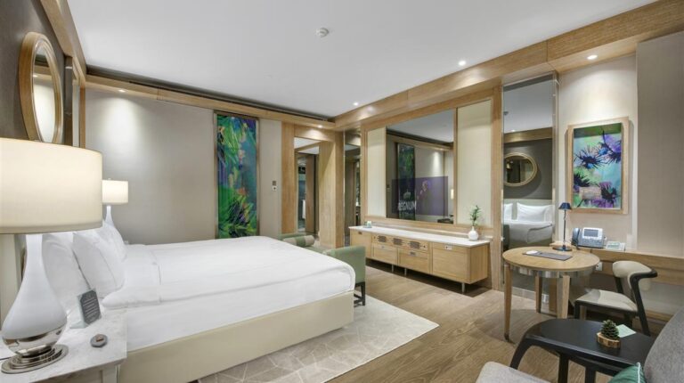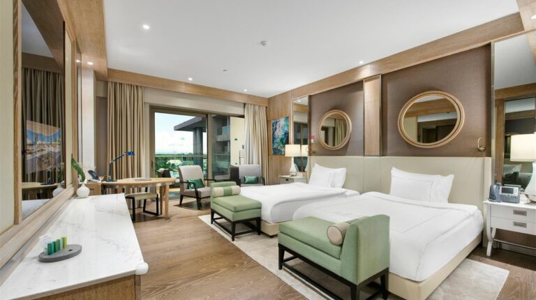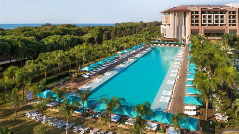Regnum Carya is a 5-star hotel on the Mediterranean coast of Turkey. In 2015, the hotel hosted many of the worlds leaders during the G-20 summit. It has also hosted private concerts and accommodate some of the worlds most popular recording artists, including Jennier Lopez, Tom Jones, and Dua Lipa. There are 19 room, suite, and villa types. Each room is elaborately detailed and elegantly decorated with modern furnishings and stunning views of the land or sea. Plus, the onsite dining options include a mix of buffet, a la carte, and casual dining opportunities.