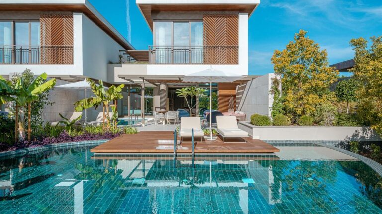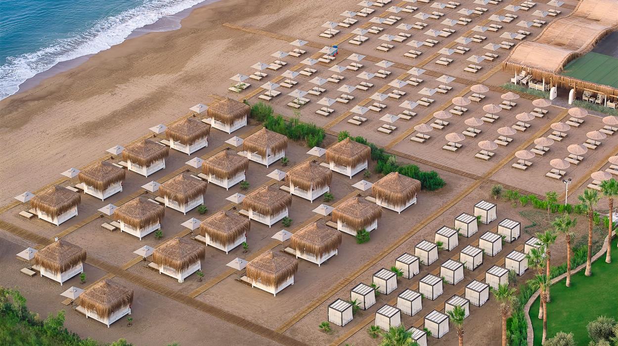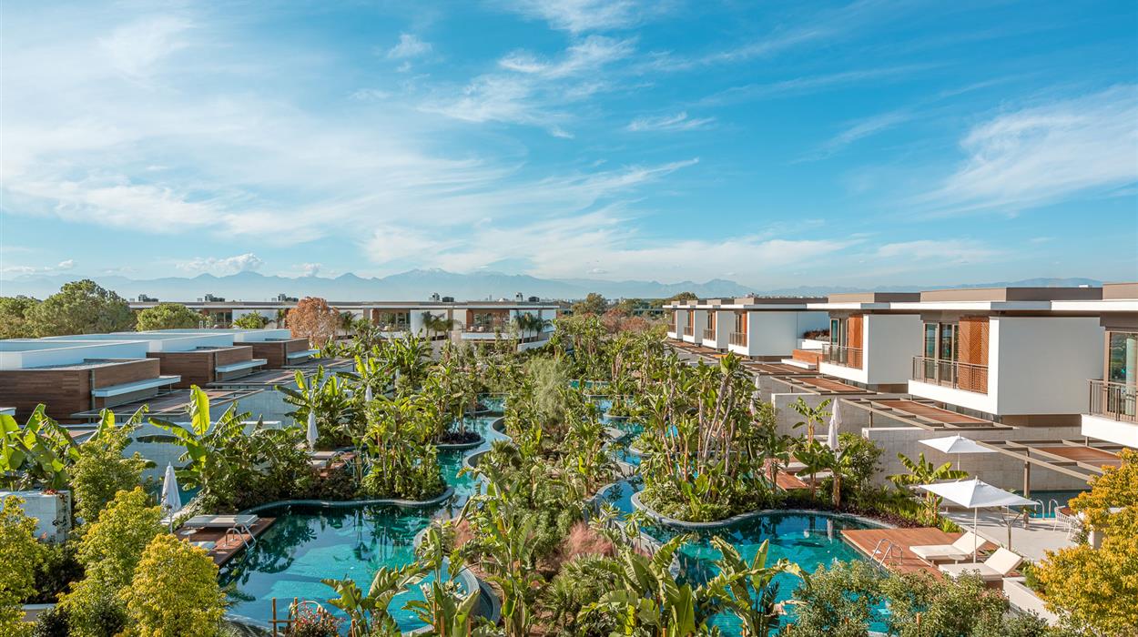 Bayou Villas is a 5-star beachfront resort in Lara, Turkey. Covering 25,000 square meters of land, the hotel has 24 private villas, land and water sport activities, lush gardens, and swimming pools. There are 4 villa categories, and each one has a private outdoor space, a separate lounge area, and a swimming pool. The gastronomic journey consists of 9 a la carte restaurants and 7 bars, with each one offering a unique twist on local and international favourites.