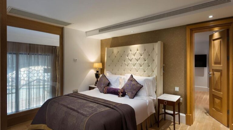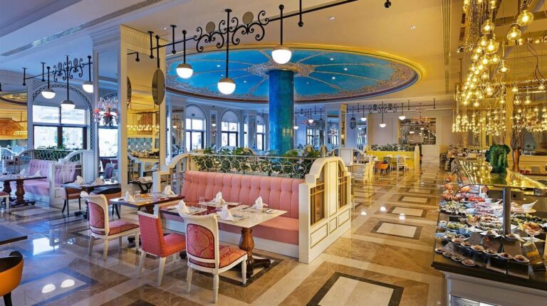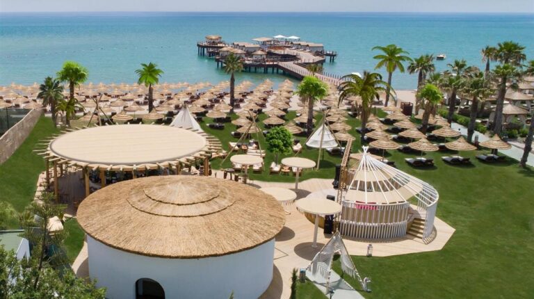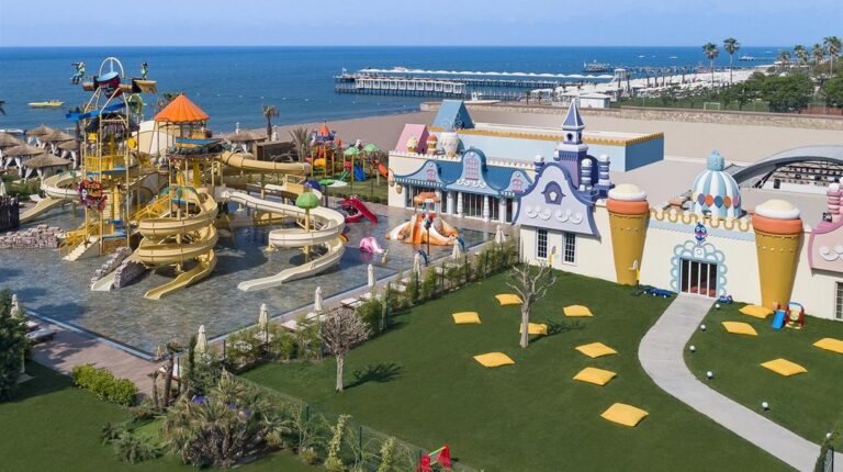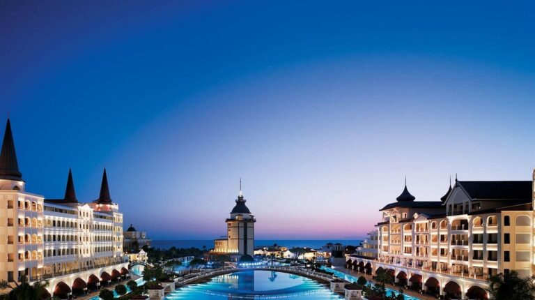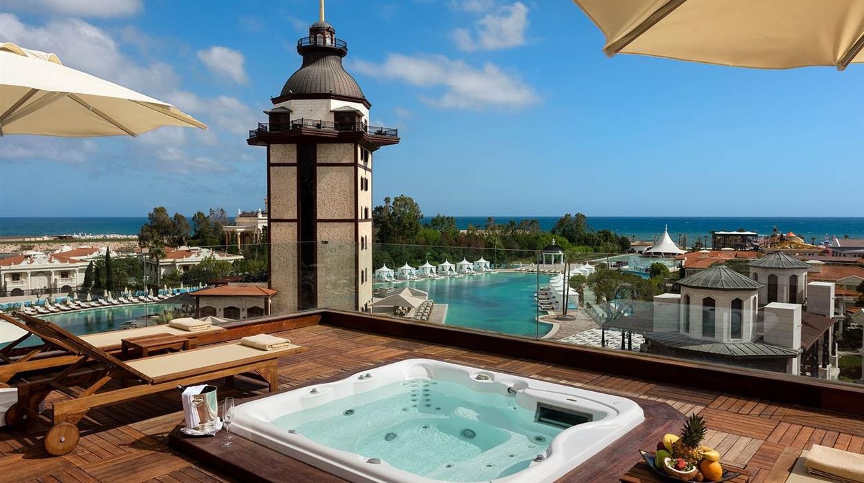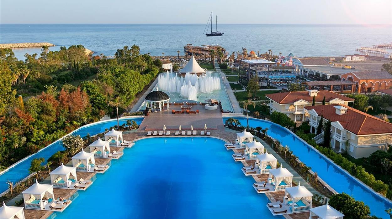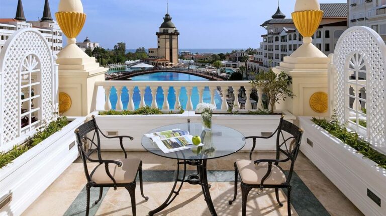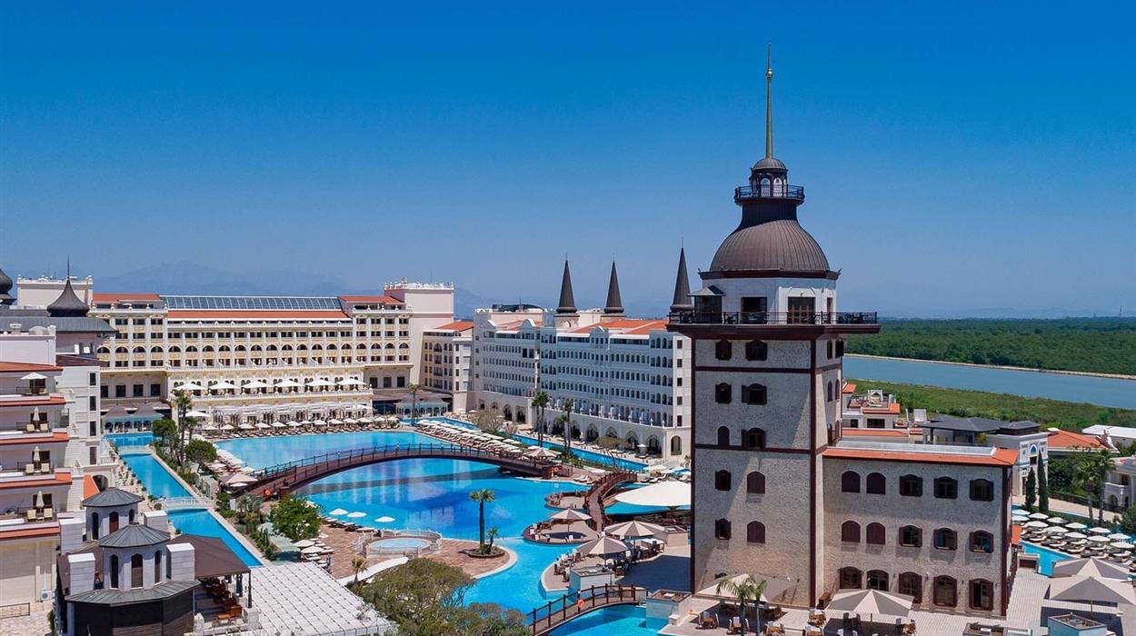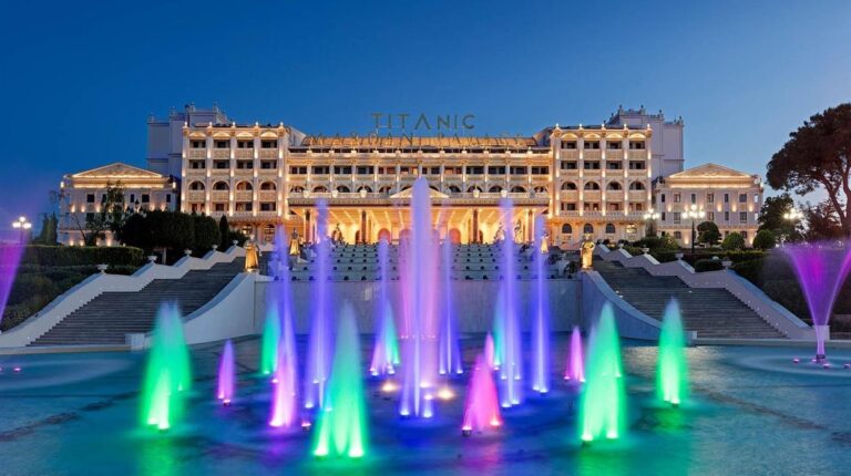 Titanic Mardan Palace is a 5-star beachfront resort in Lara, Turkey. With lagoon-style pools that extend to the private beach, you will enjoy panoramic Mediterranean Sea views and exclusive lounge areas. There are 13 room and suite categories. All accommodation types are elegantly decorated with gold and purple hues, traditional furniture, and luxurious bedding. Notable onsite experiences include the swimming pools and Aquapark, the beach, the Tini kids club, live entertainment, and sports facilities.