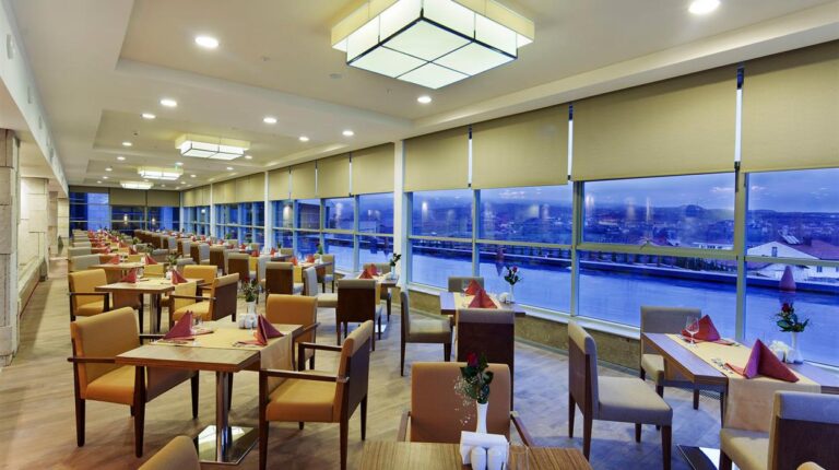 DoubleTree by Hilton Avanos – Cappadocia is a 5-star luxury hotel in Cappadocia, Turkey. As part of the Hilton group, it comes with world-class service and amenities. These include indoor and outdoor pools, a full-service spa, and a restaurant. There are 3 room and suite categories. Each one has tea and coffee-making facilities, a flat-screen TV, and a fully-equipped minibar. Other onsite facilities include the fitness centre and meeting rooms.