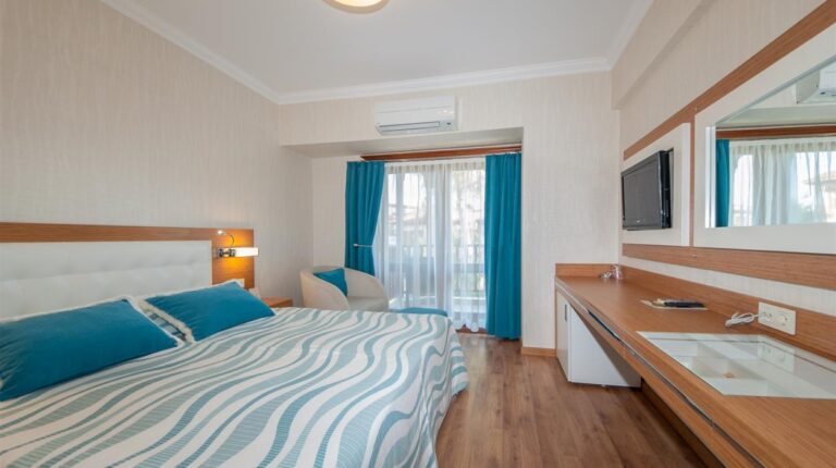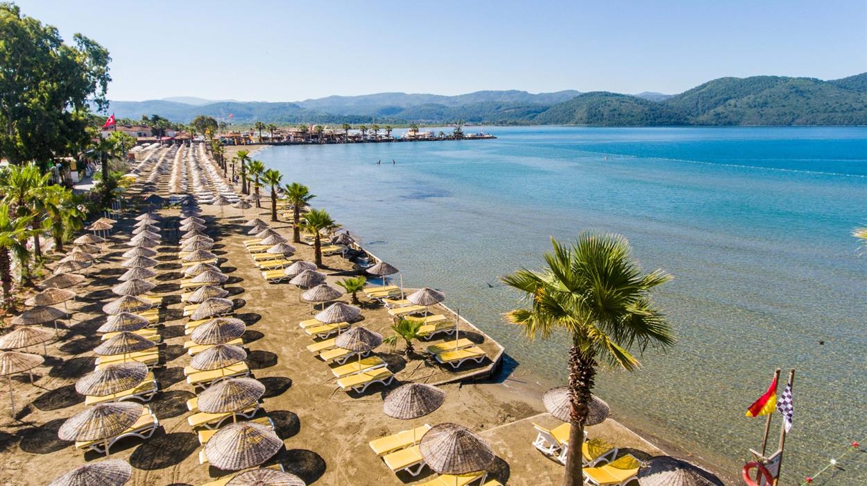 Yucelen Hotel is a luxury 4-star beachfront resort in Akyaka, Turkey. Ideal for families and couples, the hotel offers family-friendly facilities like direct beach access, undercover lounge areas, conference facilities, and Mediterranean restaurants. Just 200 metres away from Akyaka town square, you will be in proximity to local activities like forest walks, daily bout trips, and the Kadin Azmak River.