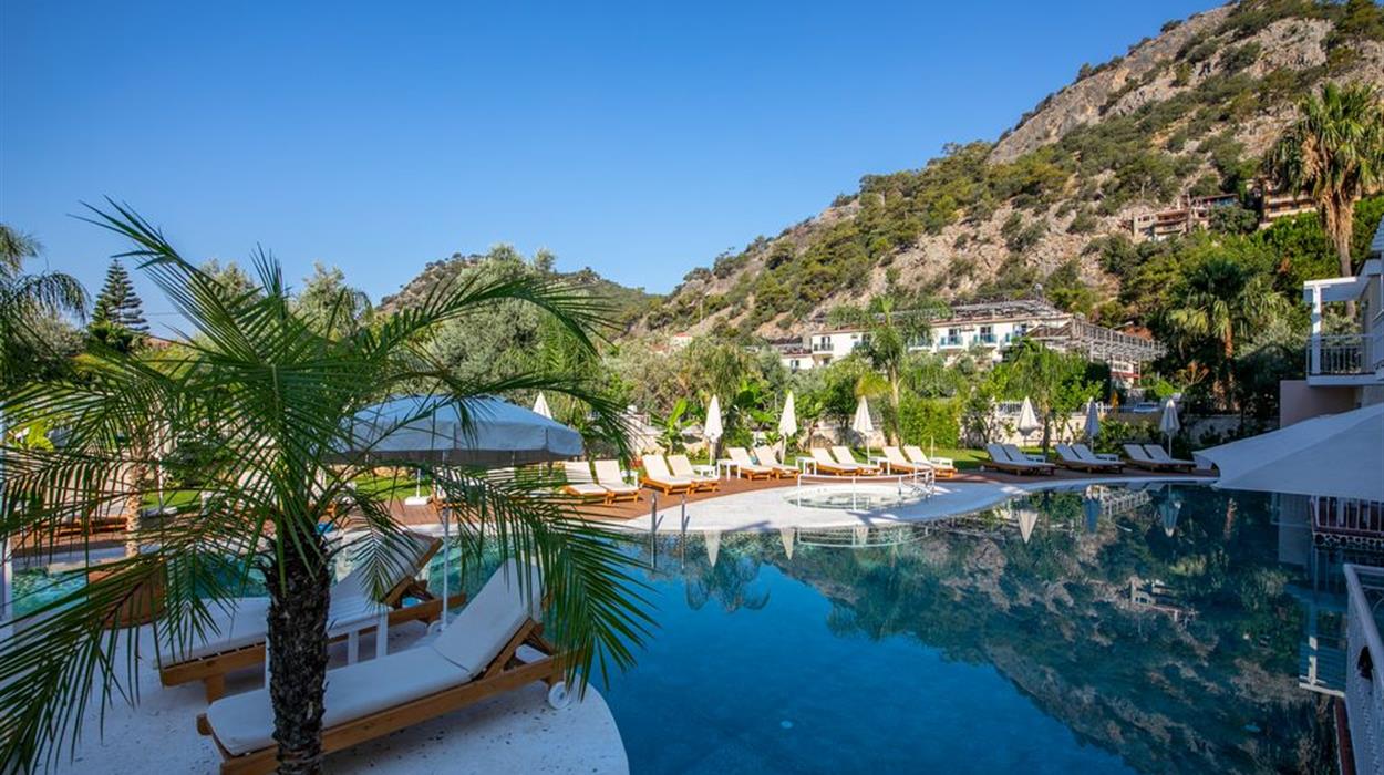 La Boutique Maya is a 5-star luxury resort in Oludeniz, Turkey. Surrounded by lush gardens and sprawling mountain ranges, you will feel at one with nature during your stay. There are 30 spacious and comfortable rooms. Each one has a private balcony with a writing desk, air conditioning, and tea and coffee making facilities. The main restaurant, La Boutique Maya, helps you start the day right with an open buffet breakfast.