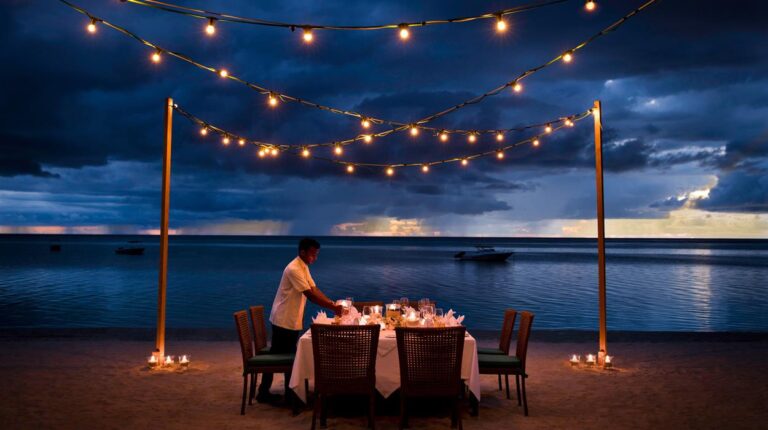 Culinary delights abound with various dining options, from local Mauritian flavours to international cuisines, complemented by an extensive selection of wines at the Van Der Stel Wine Bar. Guests can partake in many activities, including complimentary water sports, tennis, yoga, and unique cultural experiences that showcase the vibrant spirit of Mauritius.