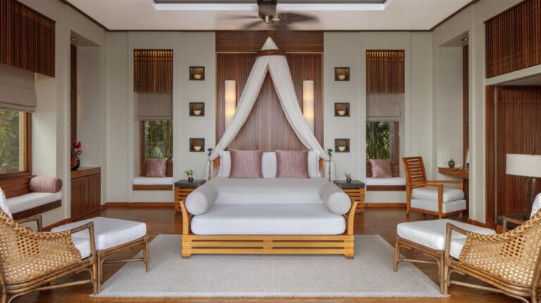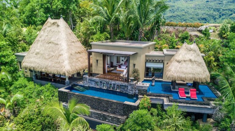 Each of the villas were designed by American landscape architect Bill Bensley. They feature high-quality furnishings, private infinity pools, and panoramic sea or garden views.