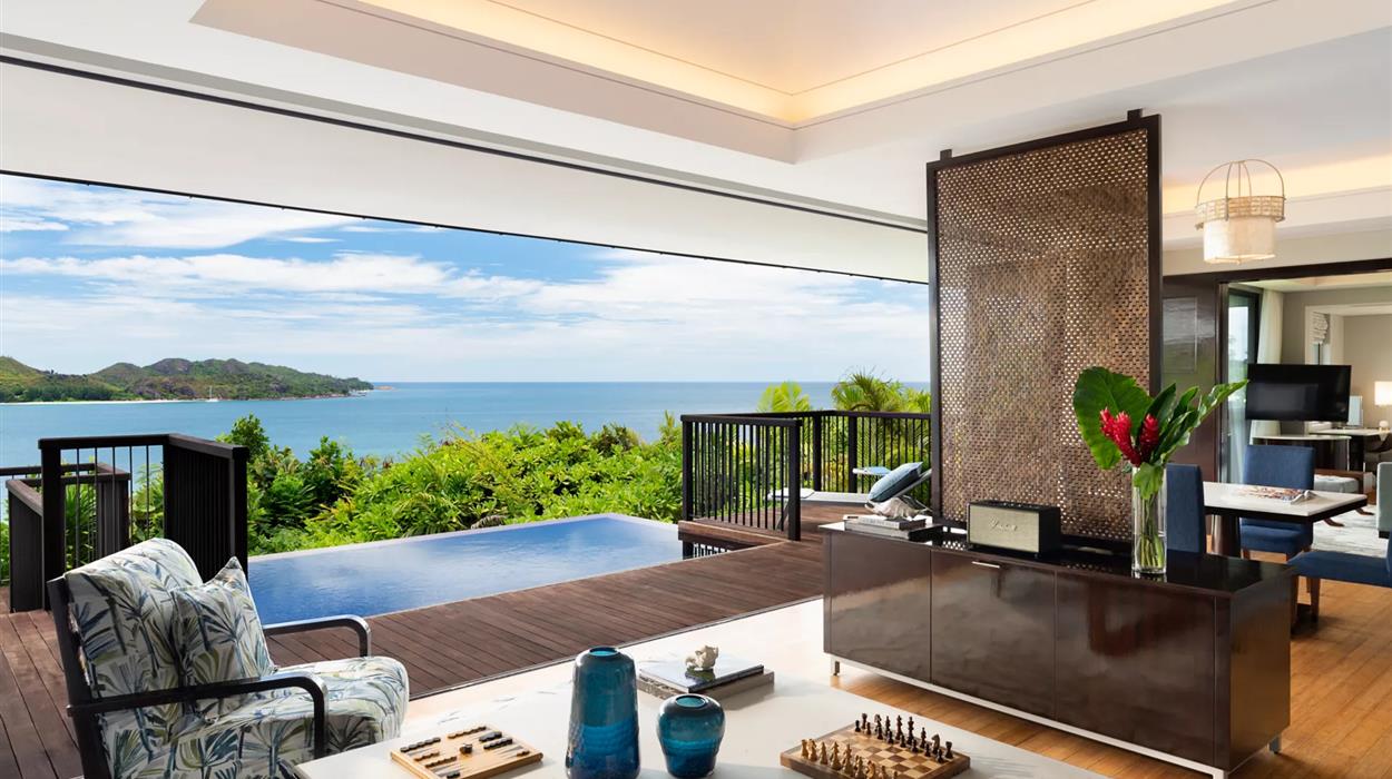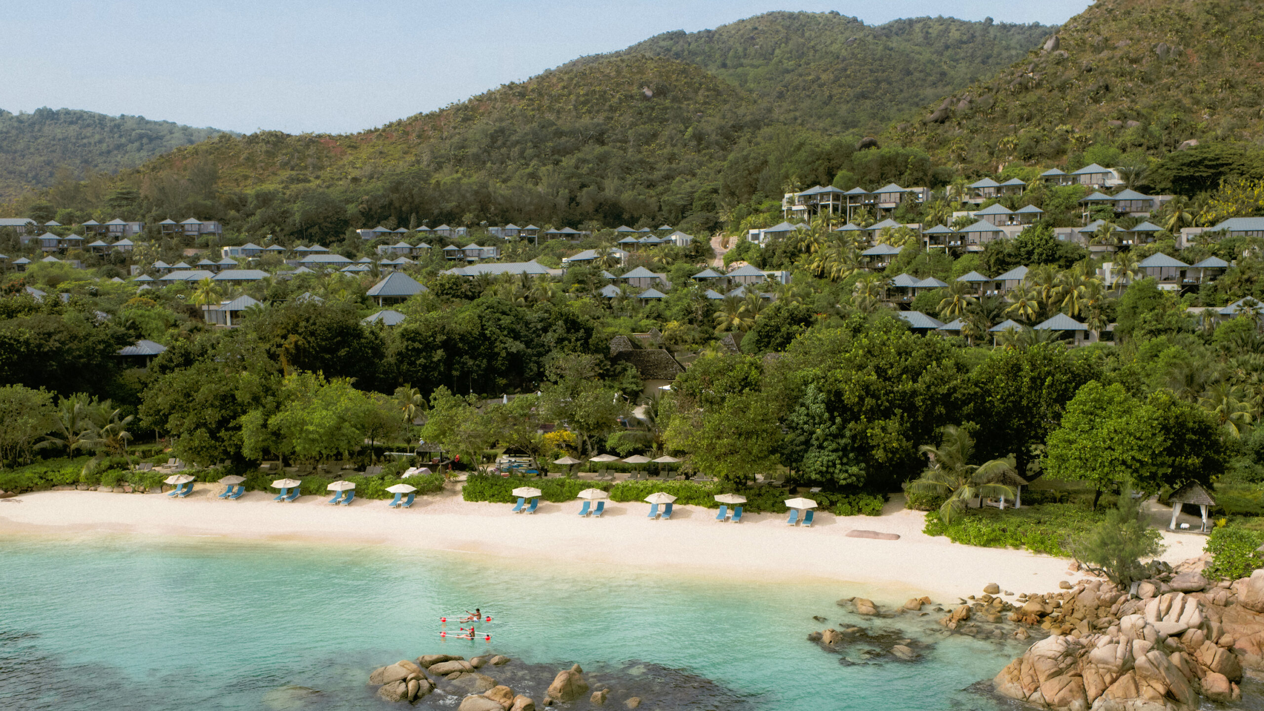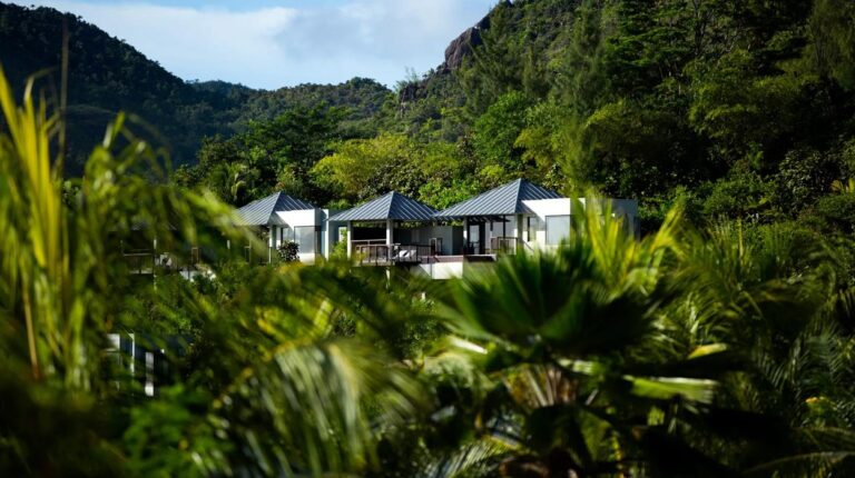 Situated on the north shore of Praslin, the second-largest island in the Seychelles archipelago, Ruffles resort has 87 private pool villas on the hillside.