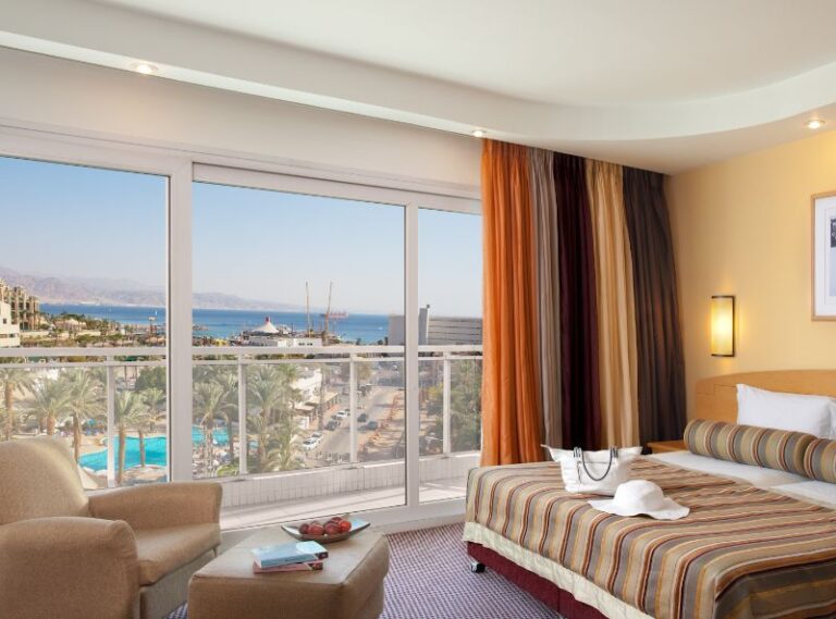 Dan Panorama Eilat is ideally located in the city centre overlooking Eilats marina and just a short walk away from the hotels private sandy beach area where guests can soak in the delights of the Red Sea. The hotel is also only a short distance away from Eilats main tourist attractions, such as the Ice Mall and Kings City theme park. The Dan Panorama Eilat maintains the high levels of service and customer care that is synonymous with the Dan Hotel chain and the hotel has built up a large base of repeat clients. The main hotel features include a freshwater pool that is heated in winter months, state of the art gym and spa centre, DaniLand kids and teens clubs, as well as an animation and entertainment programme for the whole family. This hotel offers everything you need for a beach holiday in Eilat and offers good value for money.