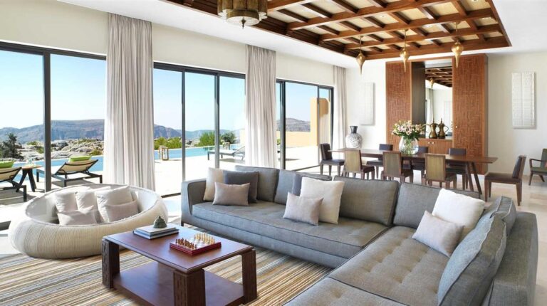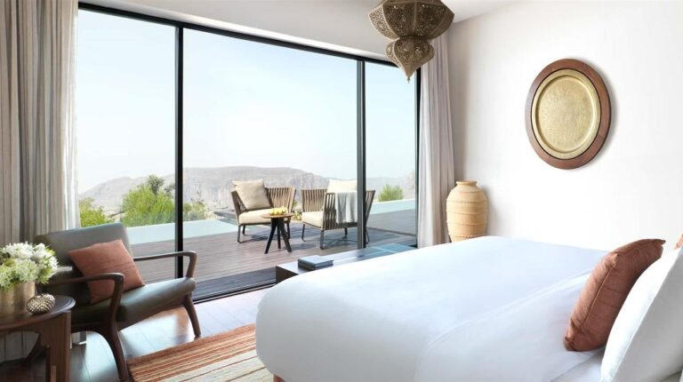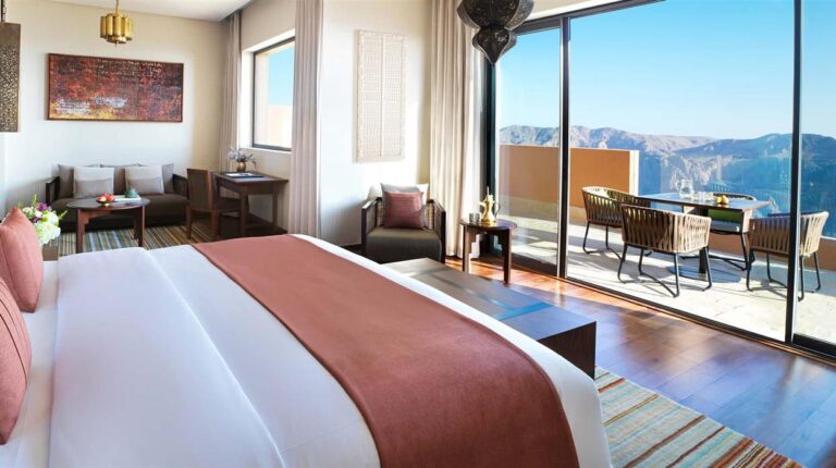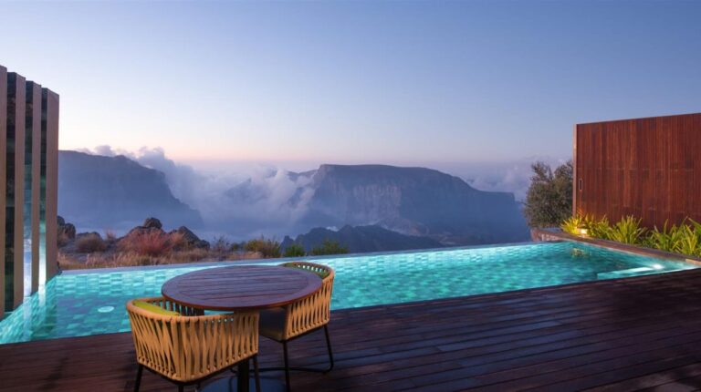 One of the worlds highest luxury resorts, Anantara Al Jabal Al Akhdhar is located on the Green Mountain, a 2-hour drive from Muscat. The hotel has 82 canyon view rooms, 33 private pools, a canyon view platform, a spa & wellness centre, and 5 restaurants and lounges. In terms of onsite experiences, be spoilt for choice by dining at canyons edge, exploring the mountains with a local guru, and watching the sun set to the enchanting sounds of Omani drums.