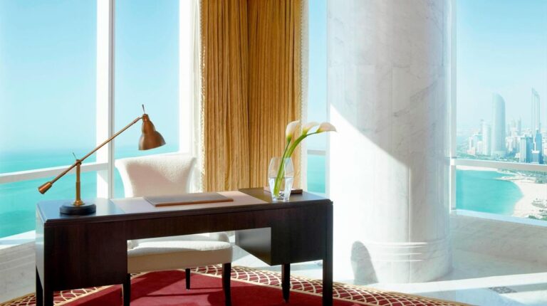 St Regis Abu Dhabi is a 5 star luxury hotel in the heart of The Corniche, located at the Western side of Abu Dhabi. Set along the coastline with views overlooking the Arabian Gulf and boasting its own private beach area, St Regis Abu Dhabi is the ideal destination to give guests the best of both worlds; all the attractions and amenities of a capital city and a relaxing seaside retreat. The hotel is located close to the Marina Mall, the World Trade Centre Mall, Khalidiyah Mall, Sheikh Zayed Mosque and many other top tourist hotspots. The hotel includes a Remede Spa, a beauty lounge, fitness facilities and Treasure Island Childrens Club, forming the ideal choice for a luxury holiday or a family holiday in UAEs dazzling capital.