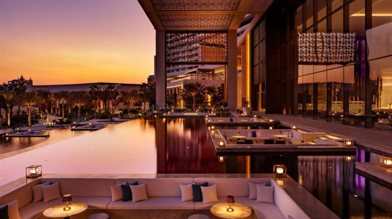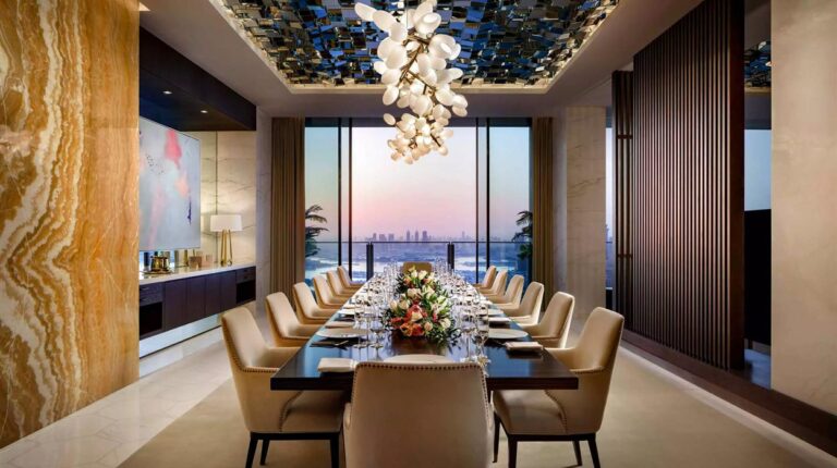 Atlantis The Royal is a 5-star luxury resort in Palm Jumeirah, Dubai. Featuring iconic nightlife venues and transformative wellness facilities, the hotel provides next-level live entertainment and holistic spa and well-being experiences to cleanse your mind, body, and soul. You can choose from a combination of suites, signature penthouses, and the Royal Club to suit your accommodation needs. Each accommodation type has captivating sky views, luxury amenities, and bespoke Italian marble bathrooms.