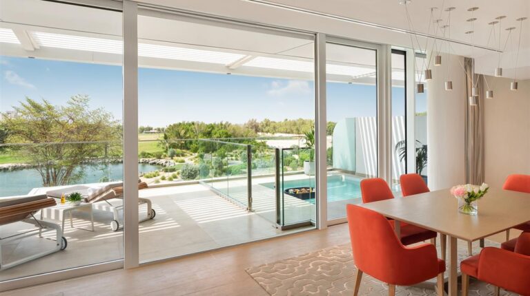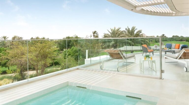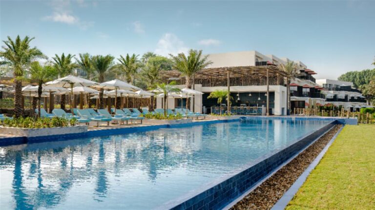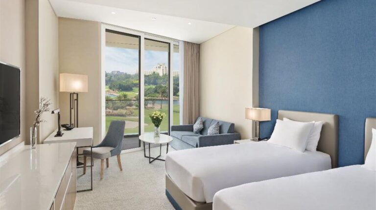 Ja Lake View Hotel is a 5-star resort in the heart of Dubai. The hotel has 9-hole championship golf course, direct access to an 800 meter beach, 348 guest rooms and suites, and 3 swimming pools. Guests also enjoy exclusive access to the JA Resort facilities, which includes the JA Equestrian Centre, Calm Spa & Salon, JA Marina, and more. There are 10 room and suite categories, and each one has tea and coffee making facilities, an in-room safety deposit box, and bedside USB ports.