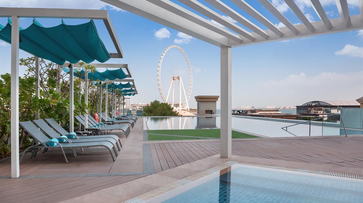 JA Ocean View Hotel is a 5-star beachside resort in Dubai. The hotel is within walking distance of the beach and a vibrant shopping area, giving you plenty of opportunities to soak up the sand and treat yourself to some retail therapy. There are 6 room and suite categories, and each accommodation type has window views of the sea, tea and coffee making facilities, and bathrooms with walk-in showers. Other onsite facilities include meetings & events spaces, 5 restaurants and bars, a swimming pool, a fitness centre, and padel tennis.