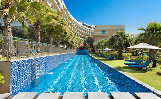 Book into Rixos The Palm Hotel & Suites at East Crescent on Palm Jumeirah and immerse yourself in one of Dubais liveliest and most beautiful holiday locations. With its own private beach, Rixos The Palm is one of the citys most exclusive resorts and a coveted destination for luxury seekers from all around the world; take a plunge into the paradisiacal outdoor pool, get pampered at the Rixos Royal Spa, book a personal training session at the hotel gym, or enjoy live music at the resorts outdoor venue Eden. Rixos the Palm offers its guests a number of dining options and is also conveniently situated close to many attractions including Dubai Marina, Dubai Marina Shopping Mall, Aquaventure Water Park, Mall of The Emirates and the famous Burj Khalifa.