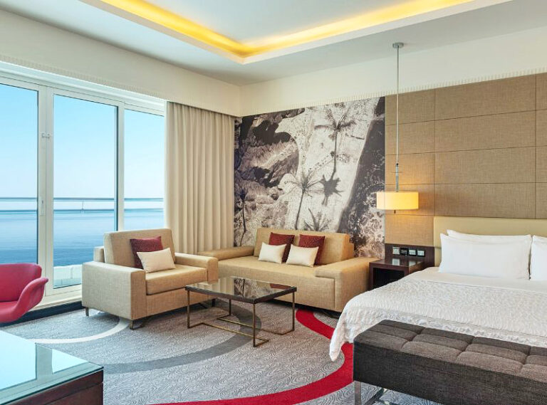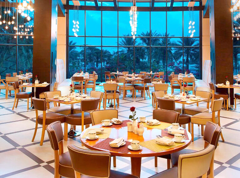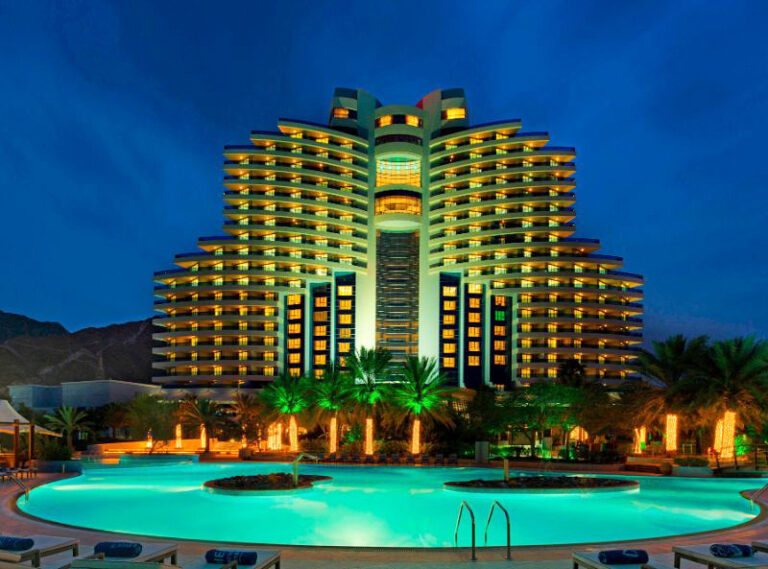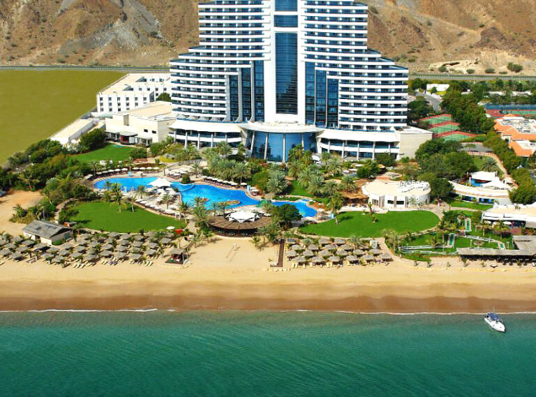 Le Meridien Al Aqah is a family-friendly resort in Fujairah offering a picturesque location for an enjoyable vacation. It is situated between the magnificent Hajar Mountains, which serve as a dramatic backdrop, and the sparkling Indian Ocean. Renowned for its exceptional service and gastronomy, it also boasts a spa, kid’s and teen’s clubs, a fitness centre, and conference facilities. All rooms are guaranteed to have a sea view. This five-star beachfront resort will provide an unforgettable all-inclusive beach holiday. It is a great place for family trips, weekend vacations, special occasions, romantic celebrations, and romantic breaks because it’s only 90 minutes by car from Dubai International Airport.