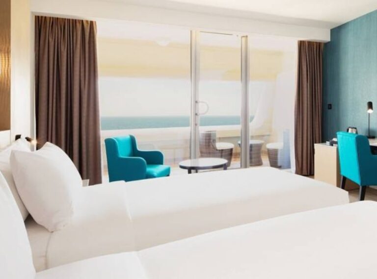 This exclusive destination is perfect for anyone who wants to experience the elegance of the East, journey across the desert, or learn about the rich architectural history while indulging in a relaxing getaway on a private beach. The Occidental Sharjah Grand has 221 rooms with a variety of amenities that solidify its impressiveness. This alcohol-free hotel features the finest cuisine, an all-inclusive service, a relaxation area, and a fitness centre. This hotel is a great choice for families due to its indoor games room and range of kid-friendly amenities. Its enviable position, rich in architectural diversity, also makes it possible to explore several surrounding attractions, including the Sharjah Aquarium and the Sahara Centre, both prime spots for entertainment and shopping. The Occidental Sharjah Grand’s authentic vibe and the breathtaking landscape that surrounds it only help to increase the appeal of this wonderful hotel.