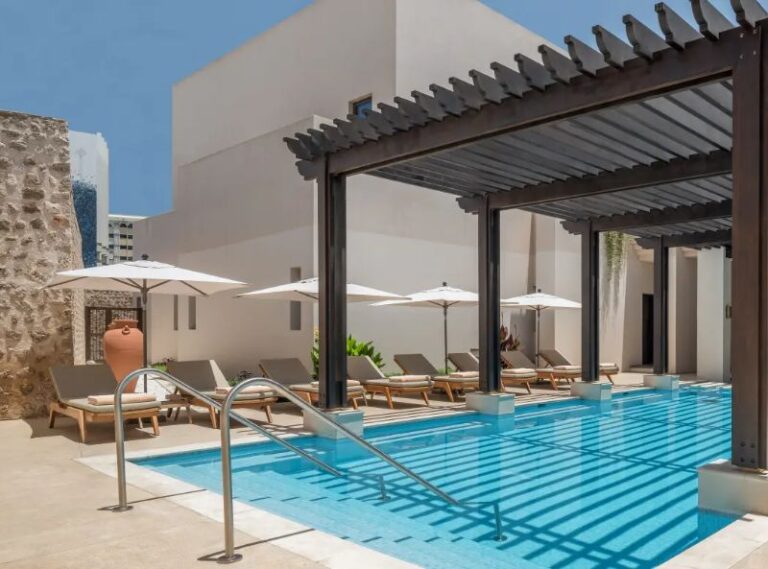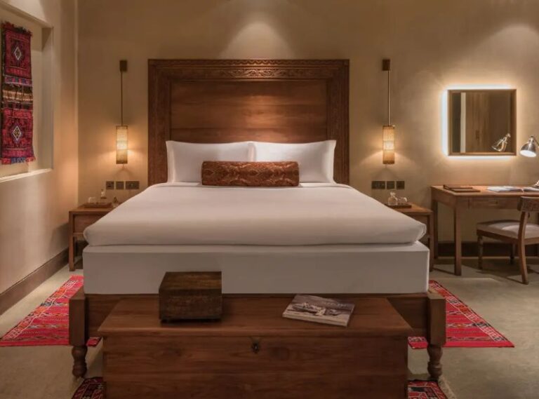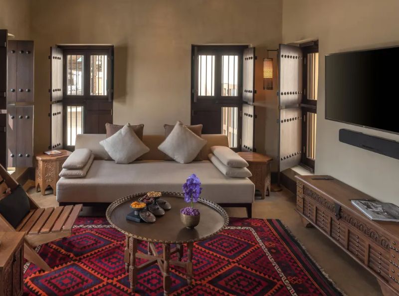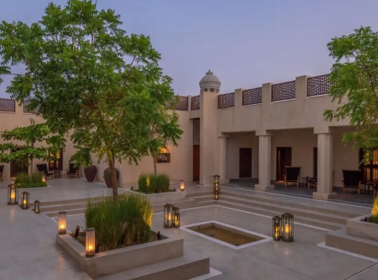 The Chedi Al Bait in Sharjah is a magnificent historical resort that was recognised as one of the most outstanding new hotels in the world in 2020. The Chedi Al Bait is a luxurious 53-key city hotel that is situated in the heart of Sharjah’s historic district, 25 minutes from Dubai, and a short stroll from the Corniche Road that borders the Arabian Gulf. The resort’s opulent guestrooms and suites are distributed among ten heritage homes that have been lovingly renovated and originally belonged to famous families. These homes blend in beautifully with the neighbourhood of Heart of Sharjah and the adjoining Souq Al Arsah traditional bazaar. Dining at The Chedi Al Bait symbolises Sharjah’s vibrant cultural lifestyle. The two restaurants in the hotel are renowned for their delectable fare, as well as for its heritage and traditional Emirati aesthetics. If you want to relax, you can lay on a lounger by the outdoor pool, visit The Chedi Spa, which offers relaxing treatments in separate rooms for men and women, peruse the vast book collection in The Library, or head to The Cigar Lounge. The hotel also houses a museum that highlights the lengthy history of Sharjah.