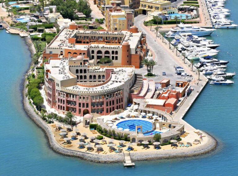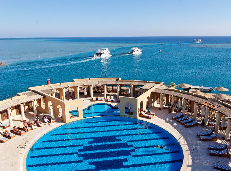 The Three Corners Ocean View Hotel occupies a unique position at the edge of a small peninsula along the Abu Tig Marina. This position allows the hotel to enjoy panoramic views of the marina, the Red Sea and El Gounas iconic waterways. The hotel has a private beach only 5 minutes away and is accessible via a complimentary shuttle service. There is also a sandy sunbathing deck on site with a jetty leading directly to the sea, along with 2 pools and many facilities, activities and both day and night time entertainment.