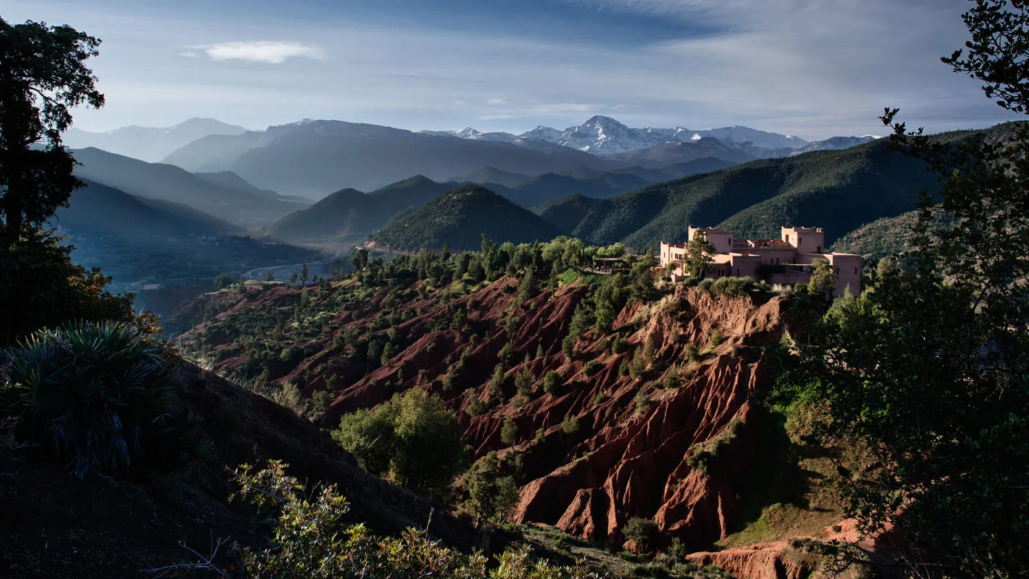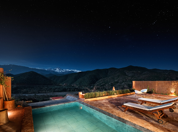 Kasbah Bab Ourika is an eco-friendly mountain retreat, sitting on a hilltop of the Ourika Valley and enjoying magnificent vistas of the surrounding lush rolling hills and snow-capped peaks of the Atlas Mountains. The hotel prides itself on its eco-friendly principles, starting with the traditional Berber building techniques that were used to create Kasbah Bab Ourika from the orange earth of the area. The restaurant uses fresh produce from the hotel gardens and staff are hired from the nearby villages so that local communities are supported and guests can experience true Moroccan hospitality. There is a panoramic infinity pool where guests can relax and take in the magnificent surroundings and for the more adventurous, there are camel and horse riding treks to explore the localities. Kasbah Bab Ourika is a wonderful Atlas Mountain retreat that will surely invigorate the mind and soul of its visitors. The hotel is 45 minutes away from Marrakech.
