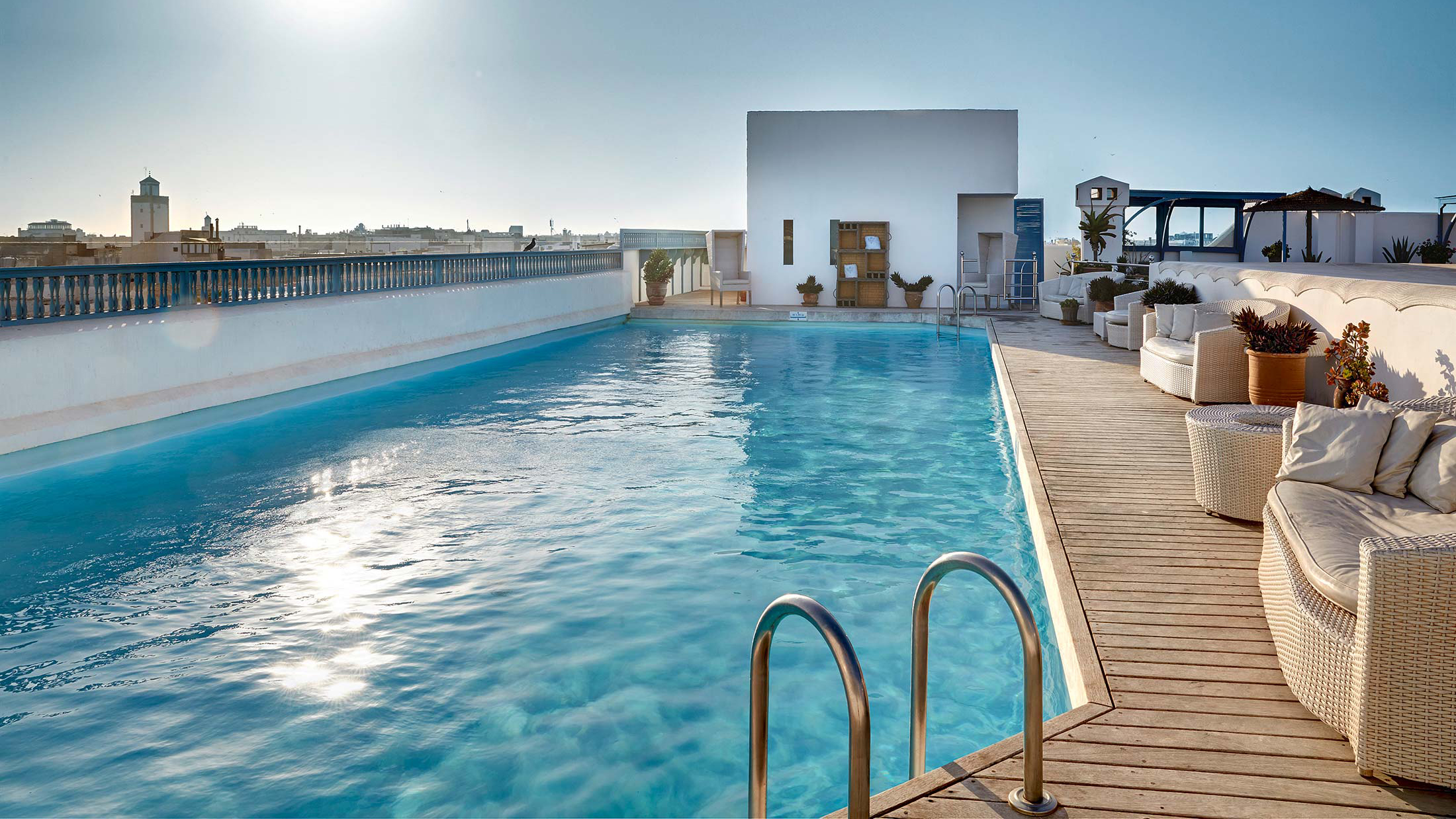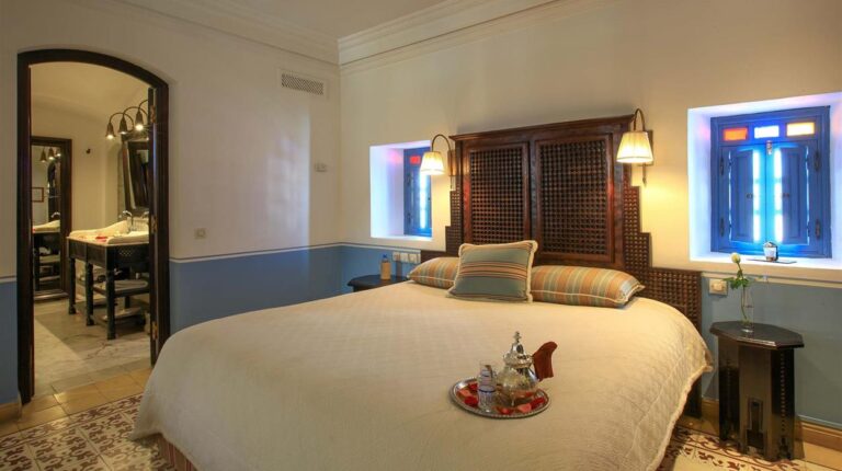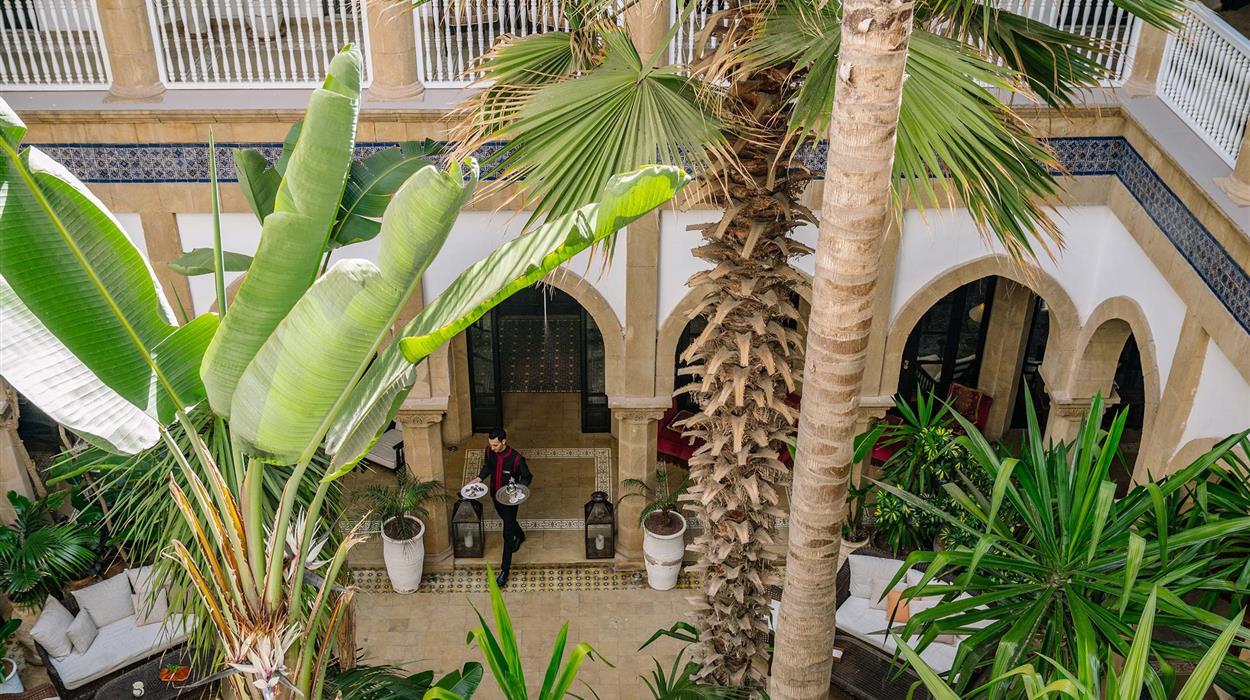 Heure Bleue Palais is a charming Moroccan hotel in the heart of Essaouira. Priding itself on being a house first before a luxury hotel, Heure Bleue Palais offers homely accommodation and personalized service with sophisticated local cuisine. There are 2 room types and 3 suite types. Each one is elegantly decorated with marble bathrooms and traditional furniture, creating an elegant and sophisticated atmosphere to make you feel pampered. Enjoy traditional Moroccan and Souiri cuisine at any of the 6 restaurants and bars. And unwind with Oriental treatments at the Hammam and spa.