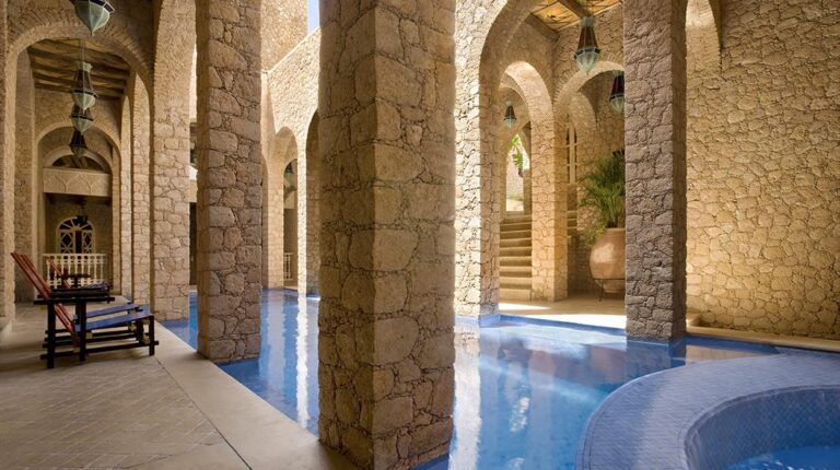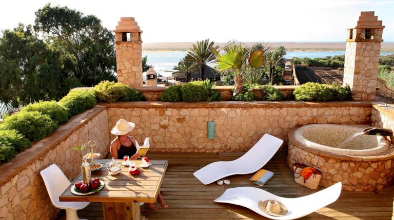 La Sultana Oualidia is an intimate five-star boutique retreat nestled between the Atlantic Ocean and the tranquil Oualidia lagoon in Morocco. The property offers just 12 individually designed rooms and suites, each crafted with handcrafted Moroccan artistry, natural stone, carved wood, rich textiles, and bespoke furnishings. Accommodation varies from elegant Prestige Rooms to spacious suites with private terraces, fireplaces, Jacuzzis, or plunge pools. Many suites provide panoramic views of the lagoon or ocean. All rooms feature air conditioning, complimentary Wi-Fi, minibars, safes, luxurious bathrooms with rainfall showers or bathtubs, plush bathrobes and slippers, blending authentic Moroccan character with refined modern comfort.
