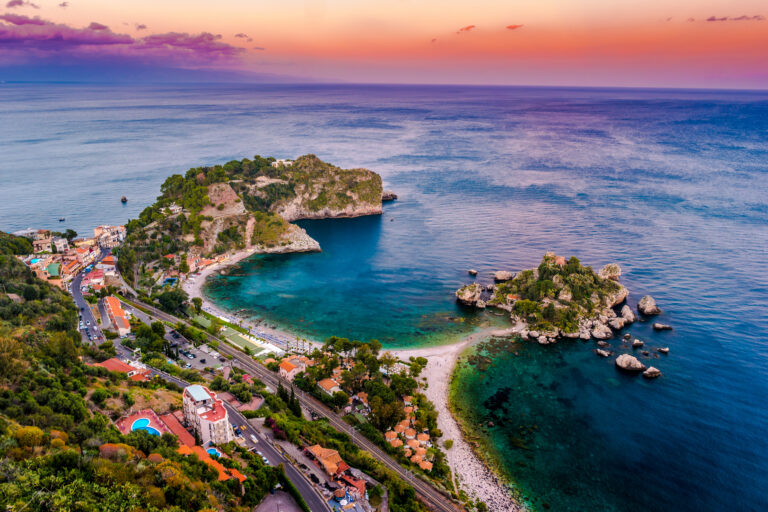As we cross over to Sicily, you’ll be amazed by the medieval town of Erice, the vineyards of Marsala, and the impressive sites of Selinunte and the Valley of the Temples in Agrigento. You’ll also experience the stunning mosaics of Piazza Armerina, the majestic Mount Etna volcano, and the charm of Taormina’s ancient theatre.